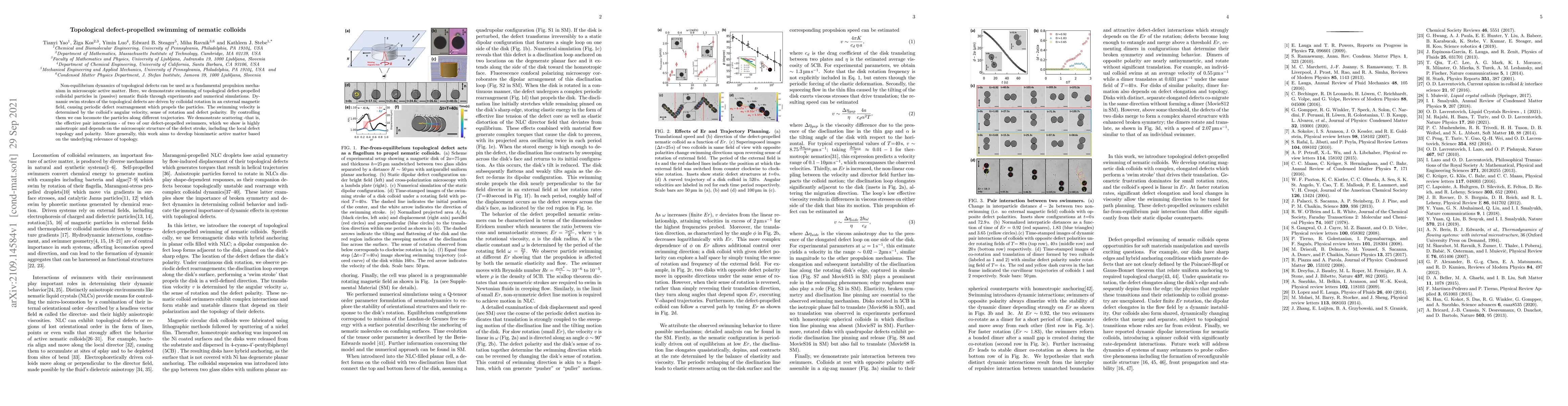 Researchers demonstrate swimming of colloidal particles propelled by topological defects in nematic fluids, controlling velocity and trajectory with external magnetic fields.