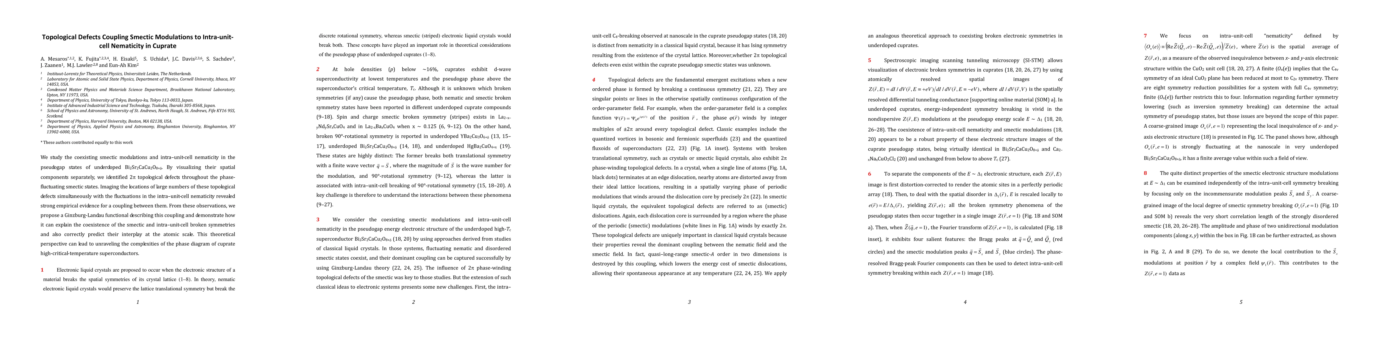 This paper investigates the coupling between smectic modulations and intra-unit-cell nematicity in underdoped Bi2Sr2CaCu2O8+δ, revealing strong evidence of 2π topological defects linking these phenomena. The study proposes a Ginzburg-Landau functional to describe this coupling, offering insights into the complexities of cuprate superconductors' phase diagram.