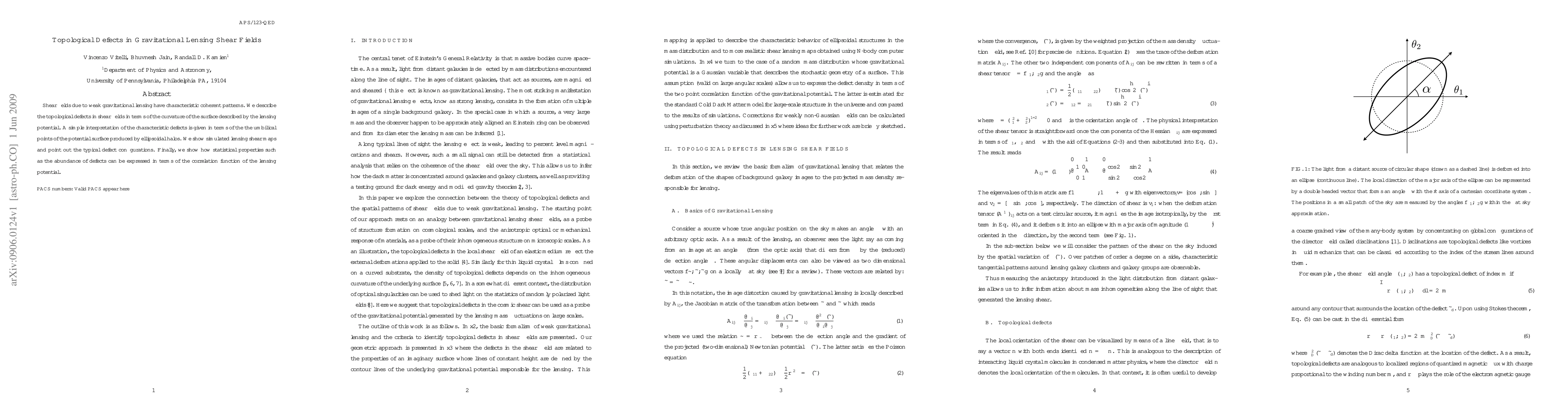 Shear fields due to weak gravitational lensing have characteristic coherent patterns. We describe the topological defects in shear fields in terms of the curvature of the surface described by the lensing potential. A simple interpretation of the characteristic defects is given in terms of the the umbilical points of the potential surface produced by ellipsoidal halos. We show simulated lensing shear maps and point out the typical defect configurations. Finally, we show how statistical properties such as the abundance of defects can be expressed in terms of the correlation function of the lensing potential.