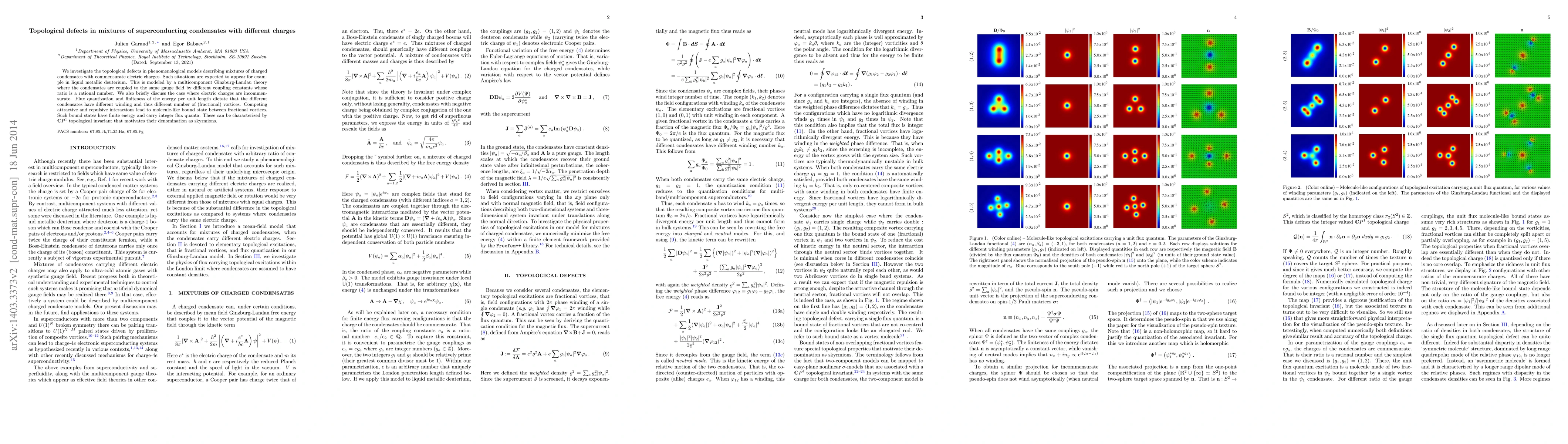 Researchers study topological defects in mixtures of charged superconducting condensates, finding bound states called skyrmions that carry integer flux quanta and can form molecule-like structures.