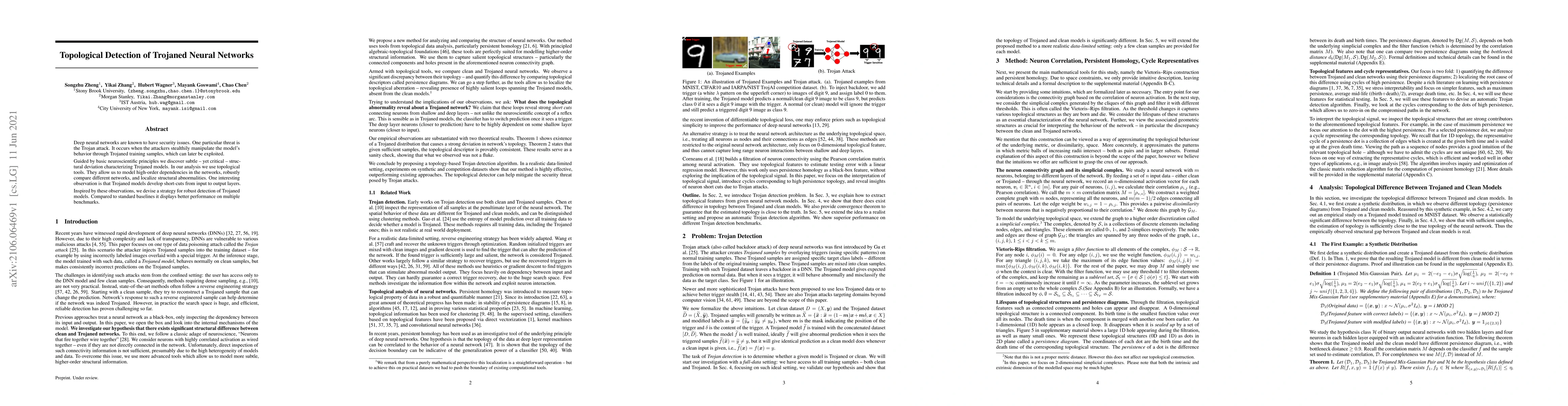 This paper explores the detection of Trojan attacks in neural networks using topological tools to identify structural deviations, such as shortcuts from input to output layers, and proposes a robust detection strategy that outperforms standard baselines on various benchmarks.