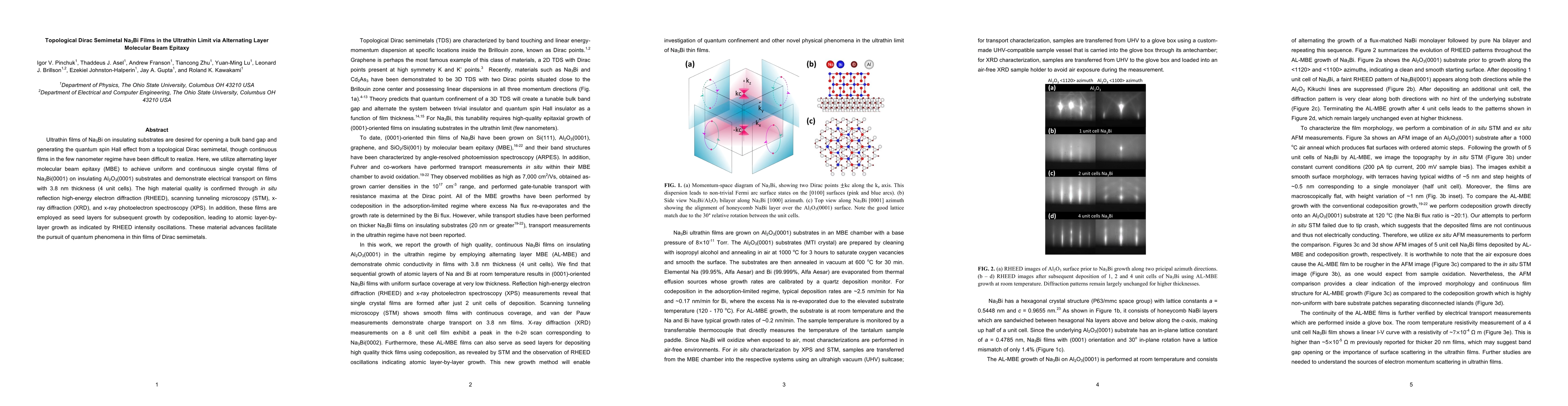 Researchers use alternating layer molecular beam epitaxy to create uniform, continuous ultrathin Na3Bi films on insulating substrates, achieving high material quality confirmed by various characterization techniques. These films enable the study of quantum phenomena in topological Dirac semimetals.