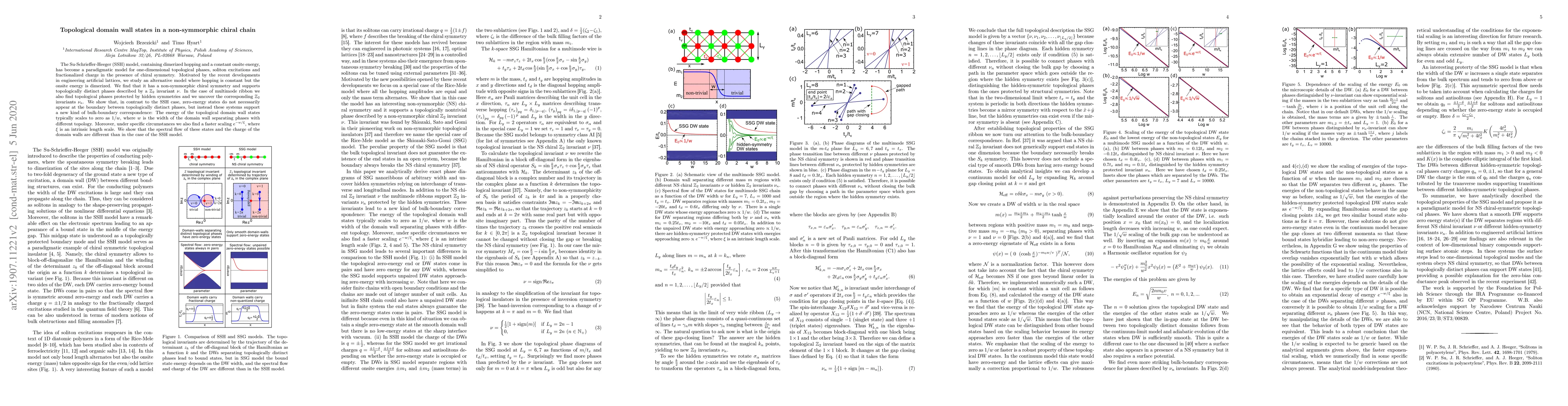 The Su-Schrieffer-Heeger (SSH) model, containing dimerized hopping and a constant onsite energy, has become a paradigmatic model for one-dimensional topological phases, soliton excitations and fractionalized charge in the presence of chiral symmetry. Motivated by the recent developments in engineering artificial lattices, we study an alternative model where hopping is constant but the onsite energy is dimerized. We find that it has a non-symmorphic chiral symmetry and supports topologically distinct phases described by a $\mathbb{Z}_{2}$ invariant $\nu$. In the case of multimode ribbon we also find topological phases protected by hidden symmetries and we uncover the corresponding $\mathbb{Z}_{2}$ invariants $\nu_{n}$. We show that, in contrast to the SSH case, zero-energy states do not necessarily appear at the boundary between topologically distinct phases, but instead these systems support a new kind of bulk-boundary correspondence: The energy of the topological domain wall states typically scales to zero as $1/w$, where $w$ is the width of the domain wall separating phases with different topology. Moreover, under specific circumstances we also find a faster scaling $e^{-w/\xi}$, where $\xi$ is an intrinsic length scale. We show that the spectral flow of these states and the charge of the domain walls are different than in the case of the SSH model.