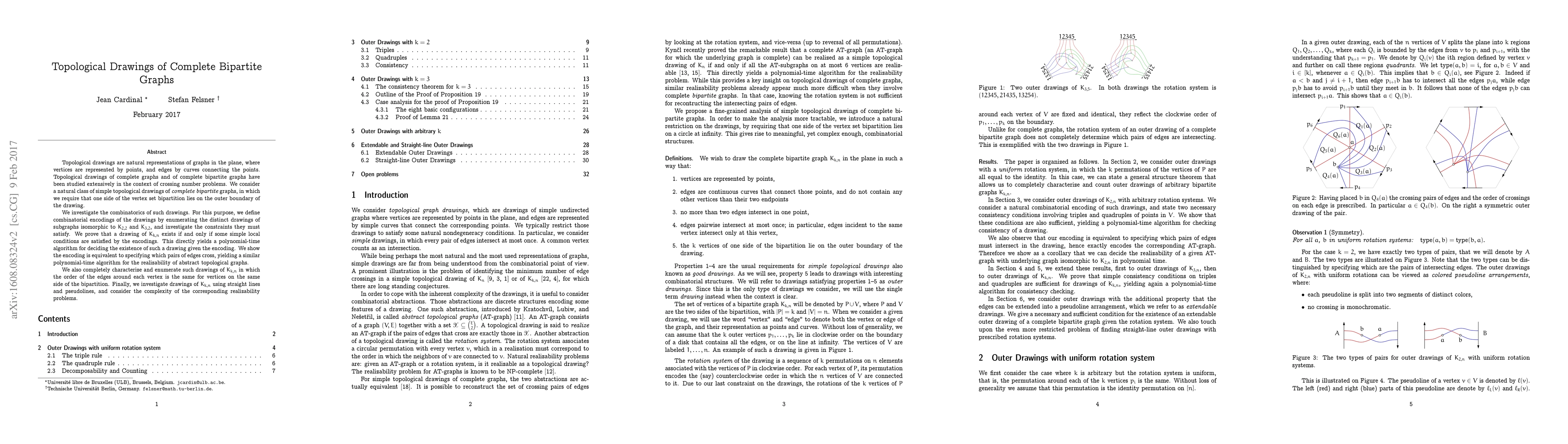 The paper introduces a combinatorial encoding method for topological drawings of complete bipartite graphs and proves conditions for their existence, linking these conditions to edge crossing specifications.