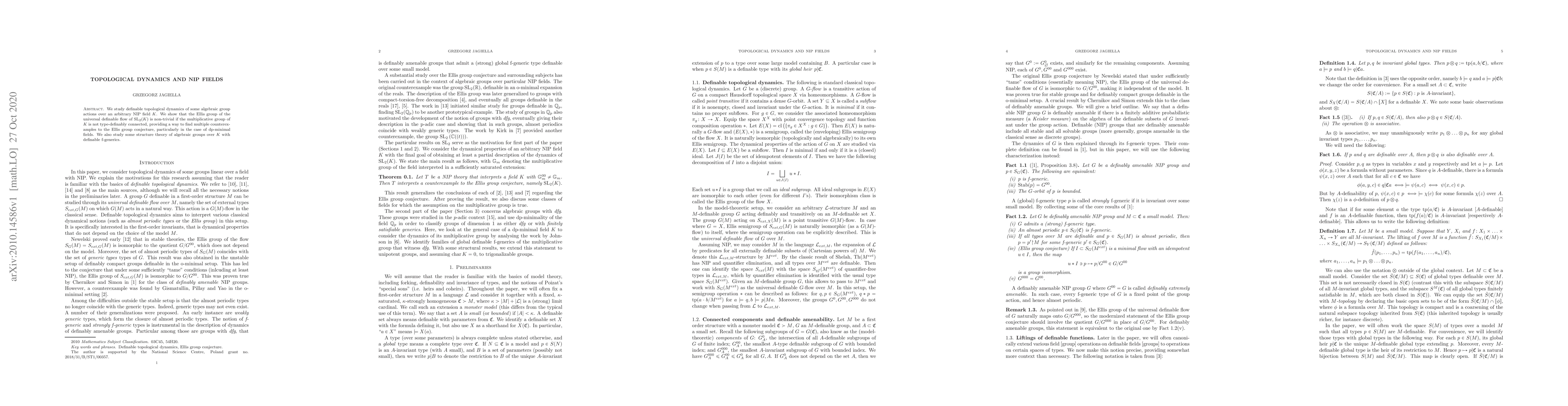 This paper investigates the topological dynamics of definable actions of $\mathrm{SL}_2$ over NIP fields, demonstrating that the Ellis group of the universal definable flow is non-trivial when the multiplicative group of the field is not type-definably connected, thus providing counterexamples to the Ellis group conjecture in dp-minimal fields. It also explores the structure theory of algebraic groups over these fields with definable f-generics.