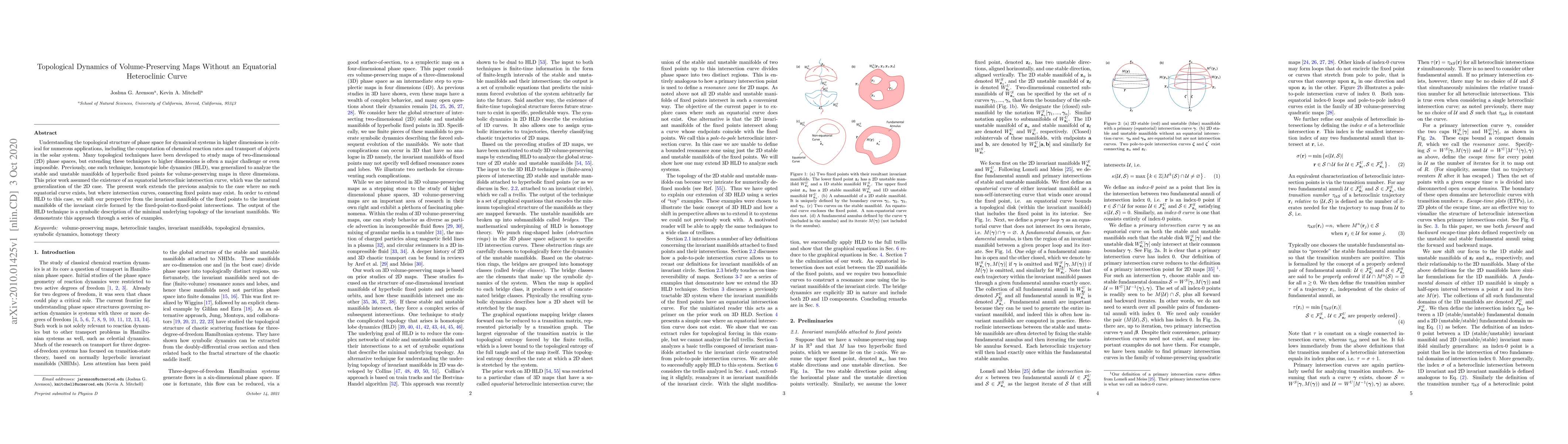 Understanding the topological structure of phase space for dynamical systems in higher dimensions is critical for numerous applications, including the computation of chemical reaction rates and transport of objects in the solar system. Many topological techniques have been developed to study maps of two-dimensional (2D) phase spaces, but extending these techniques to higher dimensions is often a major challenge or even impossible. Previously, one such technique, homotopic lobe dynamics (HLD), was generalized to analyze the stable and unstable manifolds of hyperbolic fixed points for volume-preserving maps in three dimensions. This prior work assumed the existence of an equatorial heteroclinic intersection curve, which was the natural generalization of the 2D case. The present work extends the previous analysis to the case where no such equatorial curve exists, but where intersection curves, connecting fixed points may exist. In order to extend HLD to this case, we shift our perspective from the invariant manifolds of the fixed points to the invariant manifolds of the invariant circle formed by the fixed-point-to-fixed-point intersections. The output of the HLD technique is a symbolic description of the minimal underlying topology of the invariant manifolds. We demonstrate this approach through a series of examples.
