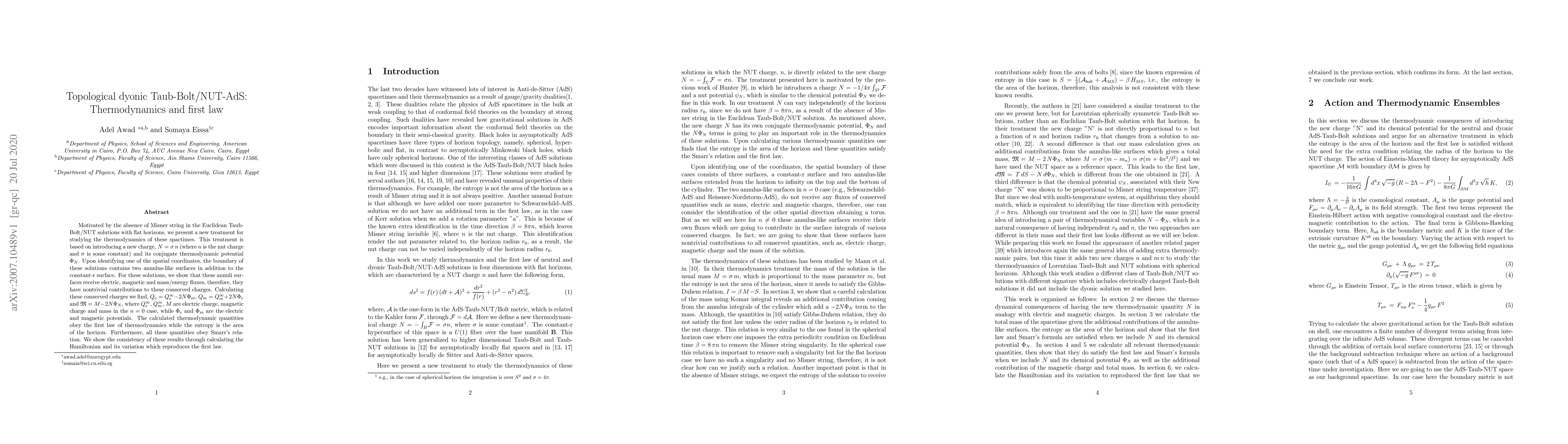 The research introduces a new treatment for studying the thermodynamics of topological dyonic Taub-Bolt/NUT-AdS solutions in four dimensions by defining a new charge N = σn, directly related to the NUT charge, n. This new charge allows for independent variation of N from the horizon radius r0, addressing the absence of Misner strings in Euclidean Taub-Bolt/NUT solutions.