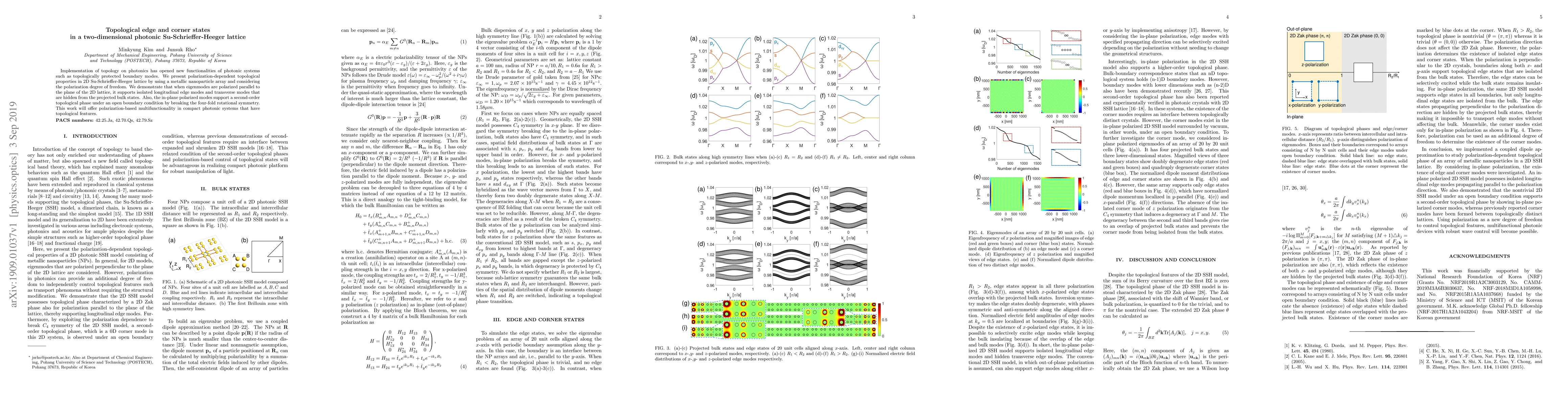 This paper investigates topological edge and corner states in a two-dimensional photonic Su-Schrieffer-Heeger lattice, demonstrating polarization-dependent topological properties. It shows that in-plane polarized modes support isolated edge modes and a second-order topological phase, offering multifunctionality in compact photonic systems.