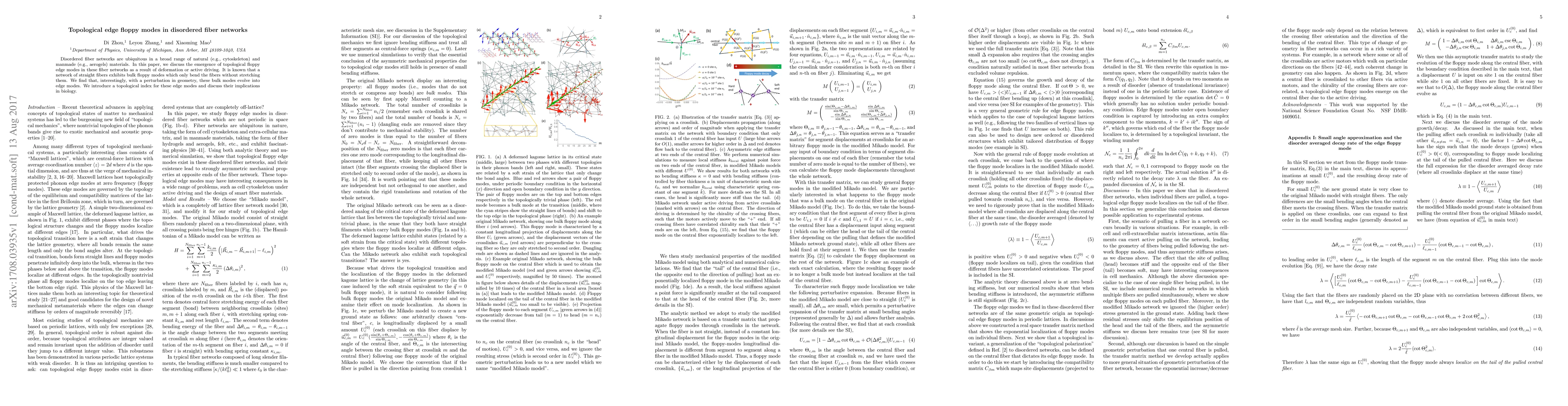 This paper investigates topological floppy edge modes in disordered fiber networks, revealing how bulk floppy modes transform into edge modes due to geometric perturbations. The study introduces a topological index for these edge modes and explores their biological implications.