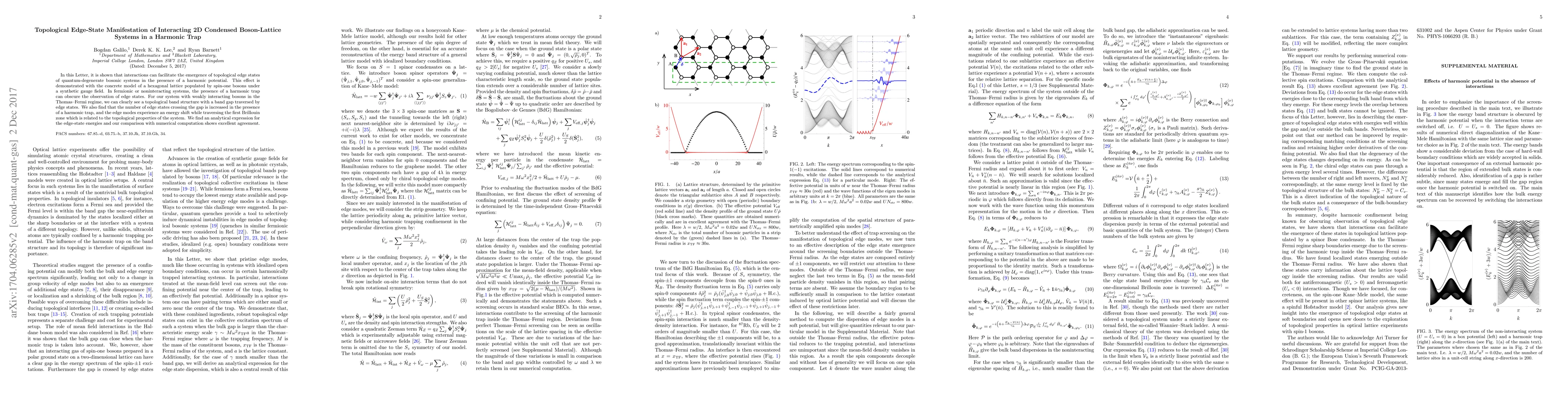 This research demonstrates that interactions in 2D bosonic systems on a hexagonal lattice can lead to topological edge states within a harmonic trap, observable through a topological band structure. The study finds an increased number of edge states and an energy shift related to the system's topological properties, with analytical results matching numerical computations.