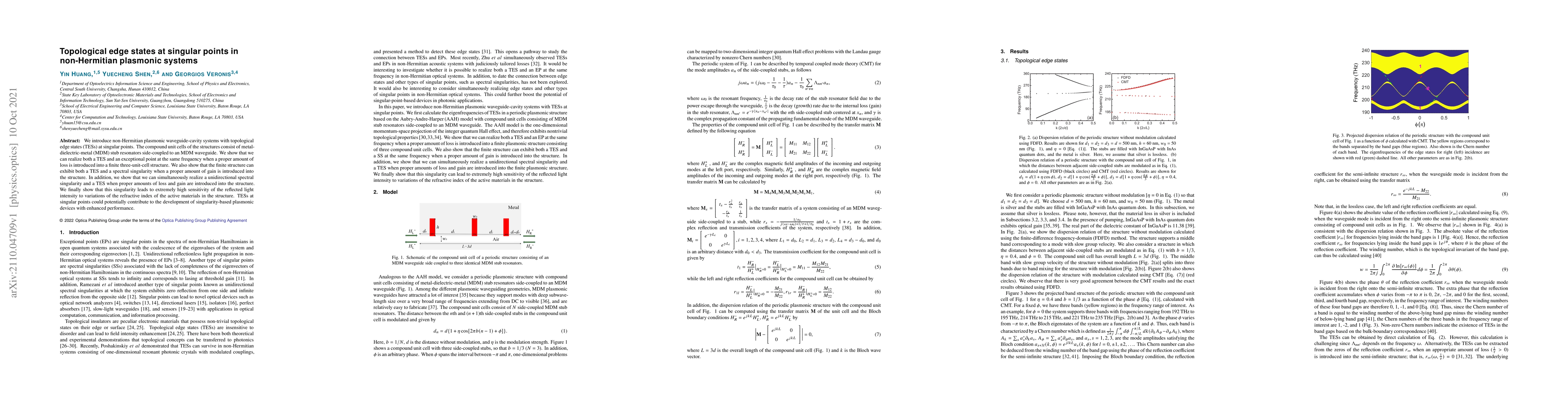 Researchers create non-Hermitian plasmonic systems with topological edge states at singular points, which could lead to enhanced performance in singularity-based devices. These systems exhibit both unidirectional spectral singularities and sensitivity to refractive index variations.