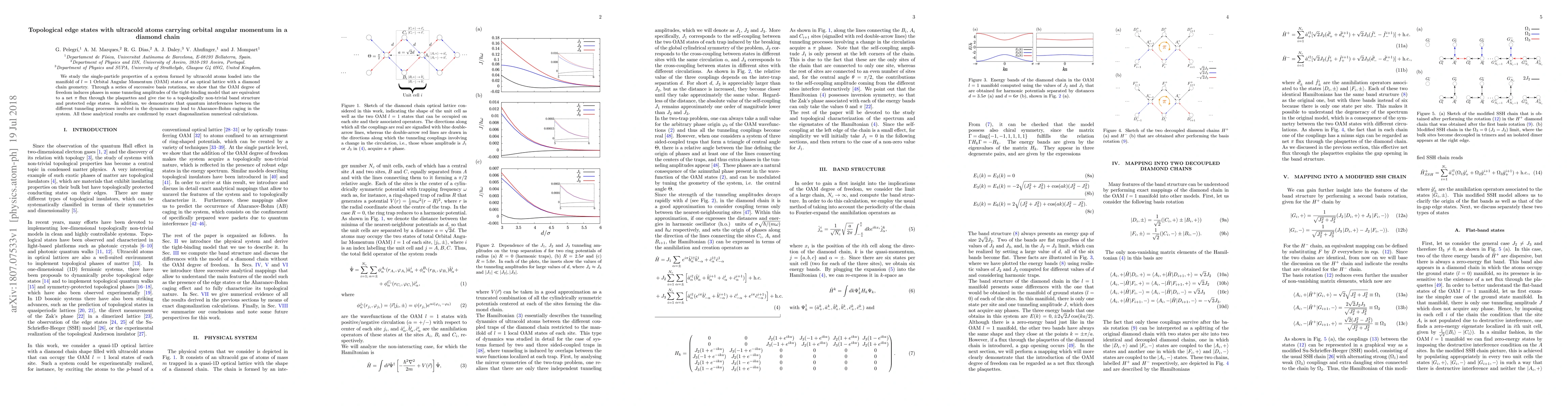 Ultracold atoms in a diamond chain lattice exhibit topological edge states due to orbital angular momentum, which induces phases in tunneling amplitudes and leads to protected edge states.