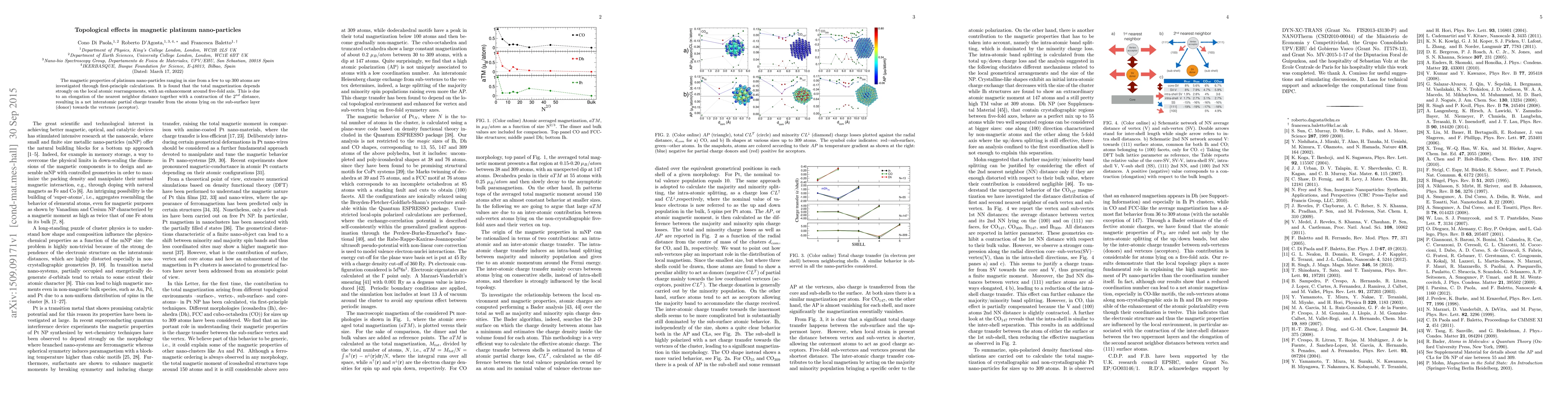 The magnetic properties of platinum nano-particles ranging in size from a few to up 300 atoms are investigated through first-principle calculations. It is found that the total magnetization depends strongly on the local atomic rearrangements, with an enhancement around five-fold axis. This is due to an elongation of the nearest neighbor distance together with a contraction of the 2$^{nd}$ distance, resulting in a net interatomic partial charge transfer from the atoms lying on the sub-surface layer (donor) towards the vertexes (acceptor).