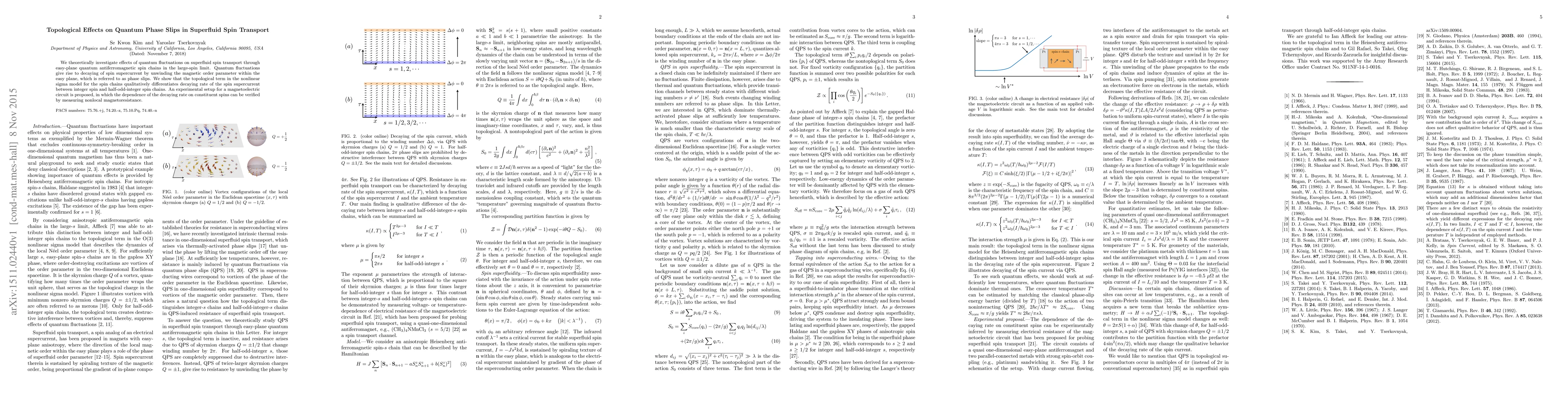 The paper introduces a topological term in the nonlinear sigma model for spin chains, which differentiates the decaying rate of spin supercurrent between integer and half-odd-integer spin chains due to quantum phase slips.