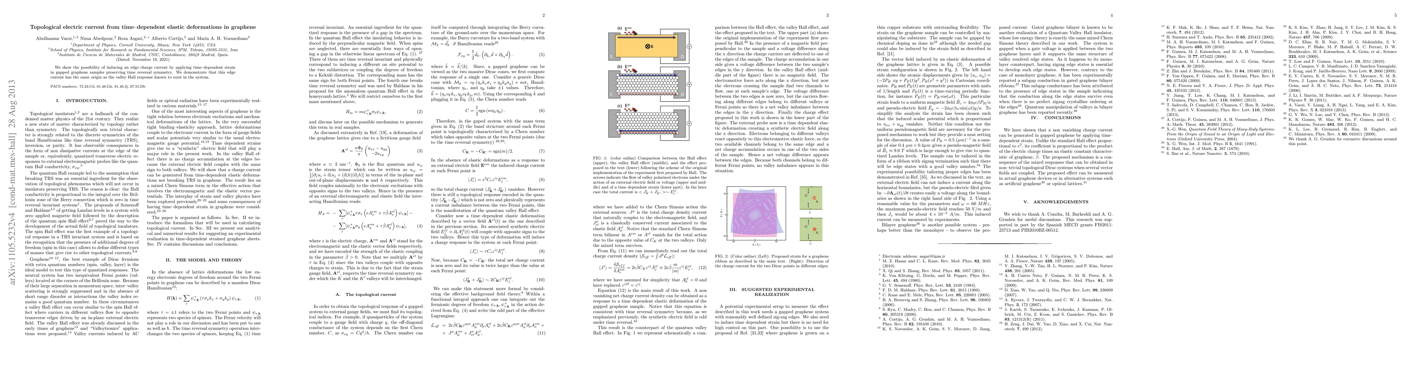 Summary: Research demonstrates that time-dependent elastic deformations in gapped graphene can induce an edge charge current, originating from the same mechanism as the valley Hall response, while maintaining time reversal symmetry. This provides a novel method for generating topological electric currents.