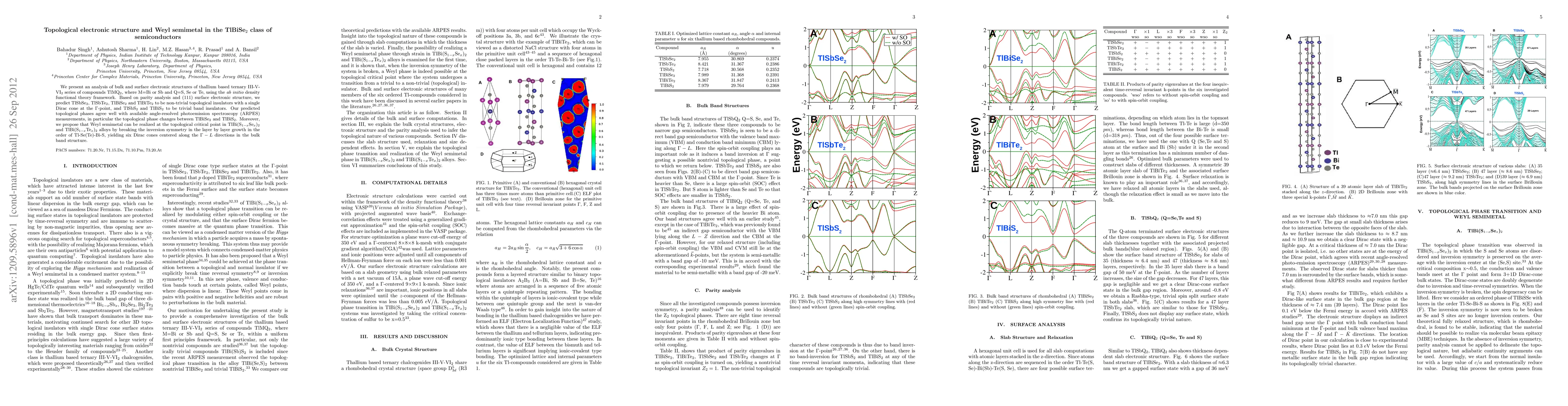 This paper uses ab initio density functional theory to analyze the topological electronic structure of TlMQ$_2$ semiconductors, predicting non-trivial topological insulators and trivial band insulators among them. It also proposes that Weyl semimetals can be realized in TlBi(S$_{1-x}$Se$_x$)$_2$ and TlBi(S$_{1-x}$Te$_x$)$_2$ alloys by breaking inversion symmetry.