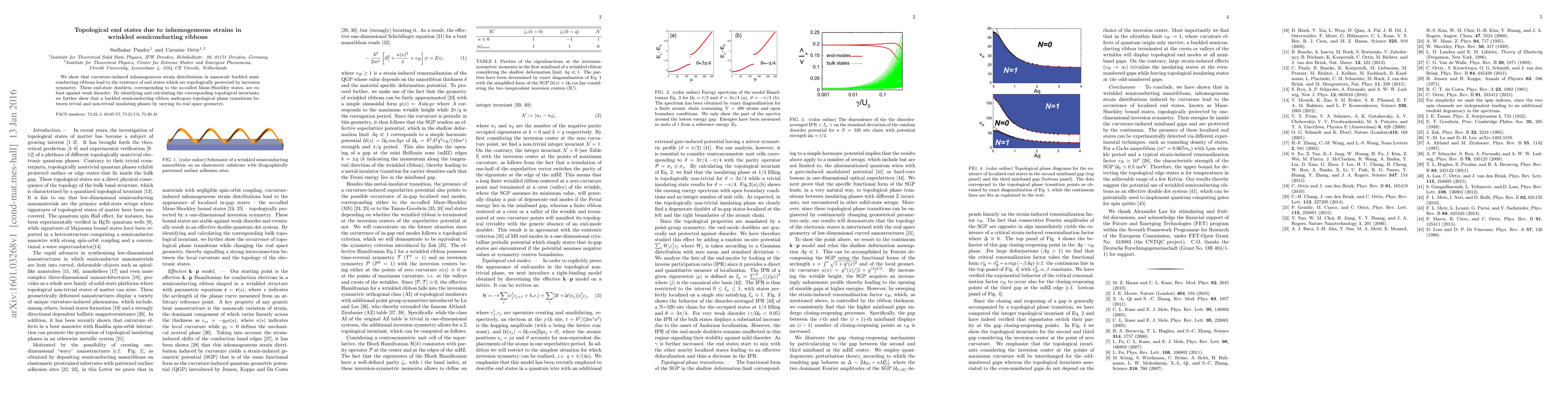 Researchers discover topological end states in buckled semiconducting ribbons that are protected by inversion symmetry and remain stable against weak disorder, leading to phase transitions between insulating phases.