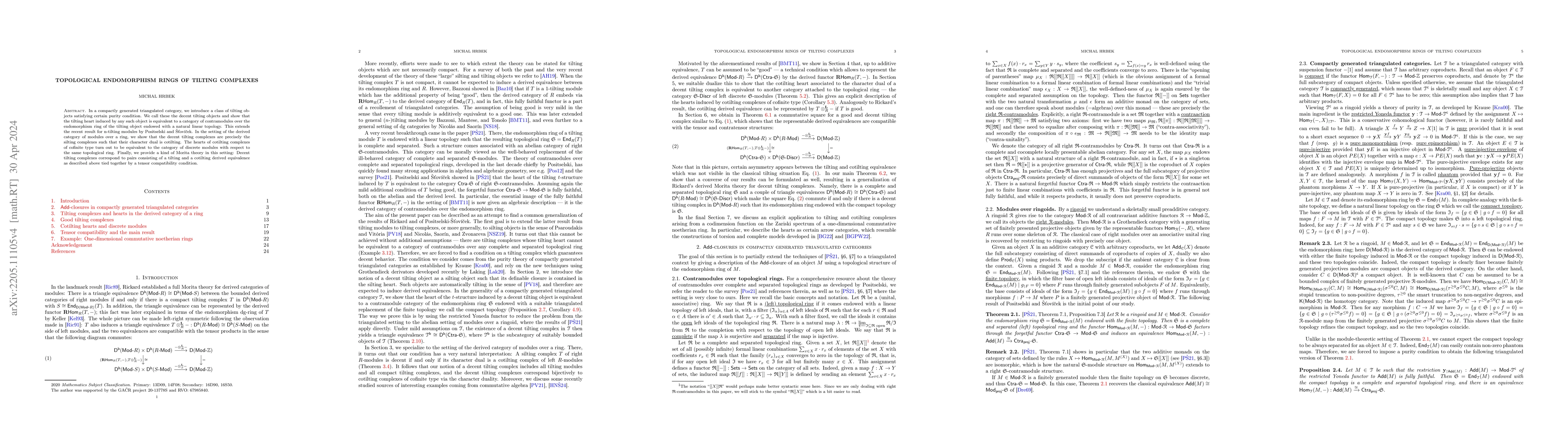 This paper explores the topological endomorphism rings of decent tilting complexes in triangulated categories, showing they are equivalent to contramodule categories over a topological ring. It connects decent tilting complexes with silting complexes and cotilting derived equivalences, and establishes a Morita-theoretic framework linking these objects.