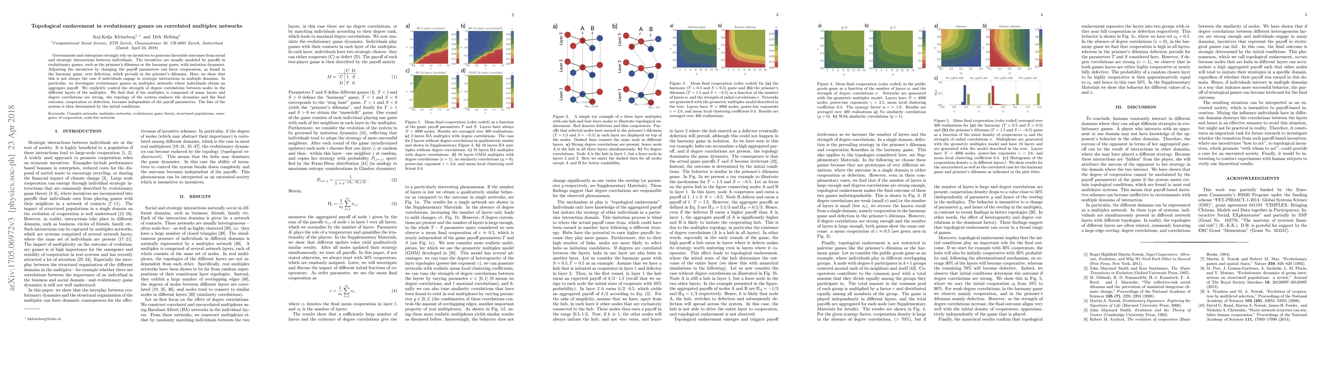 This paper explores how strategic interactions in multiple domains on correlated multiplex networks can lead to "topological enslavement," where the final outcome of evolutionary games becomes independent of payoff parameters and is instead determined by the network's topology and initial conditions. Strong degree correlations across many layers in the multiplex can dominate the dynamics, overriding the usual influence of incentives.