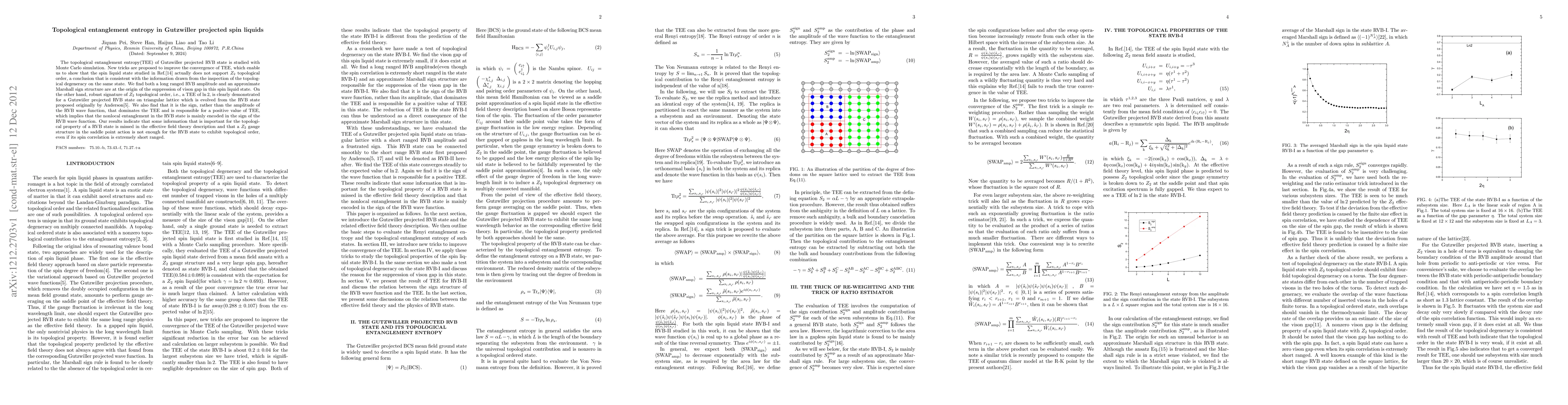 This paper investigates the topological entanglement entropy (TEE) in Gutzwiller projected spin liquids using Monte Carlo simulations. It concludes that the spin liquid state in question lacks $Z_{2}$ topological order, while a different projected RVB state on a triangular lattice does exhibit robust $Z_{2}$ topological order, highlighting the importance of the RVB wave function's sign over its amplitude for TEE.