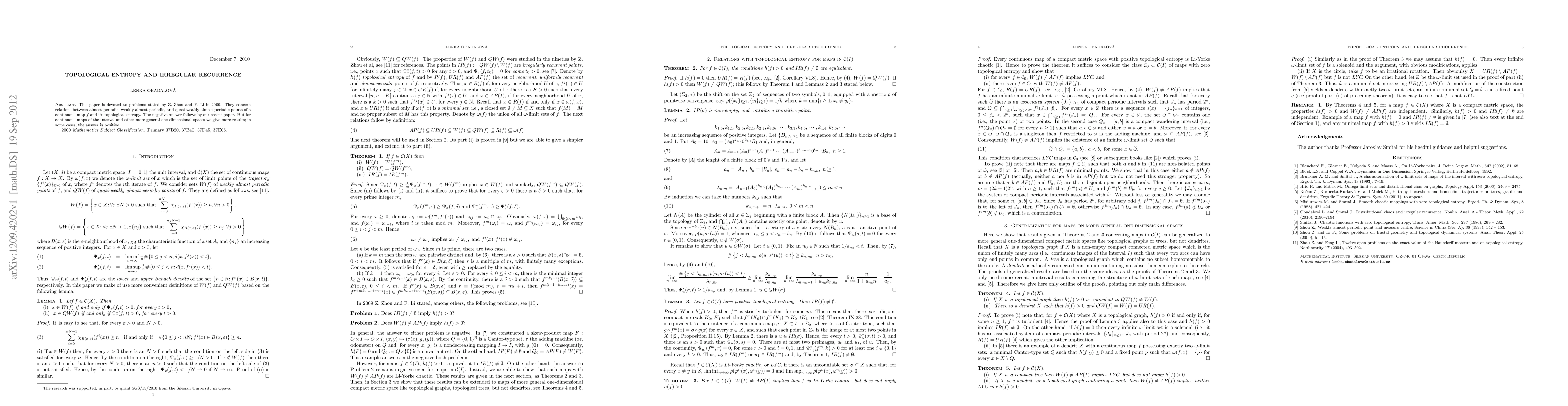Researchers investigate relationships between topological entropy and recurrence patterns in one-dimensional spaces under continuous maps, finding mixed results depending on the space type.