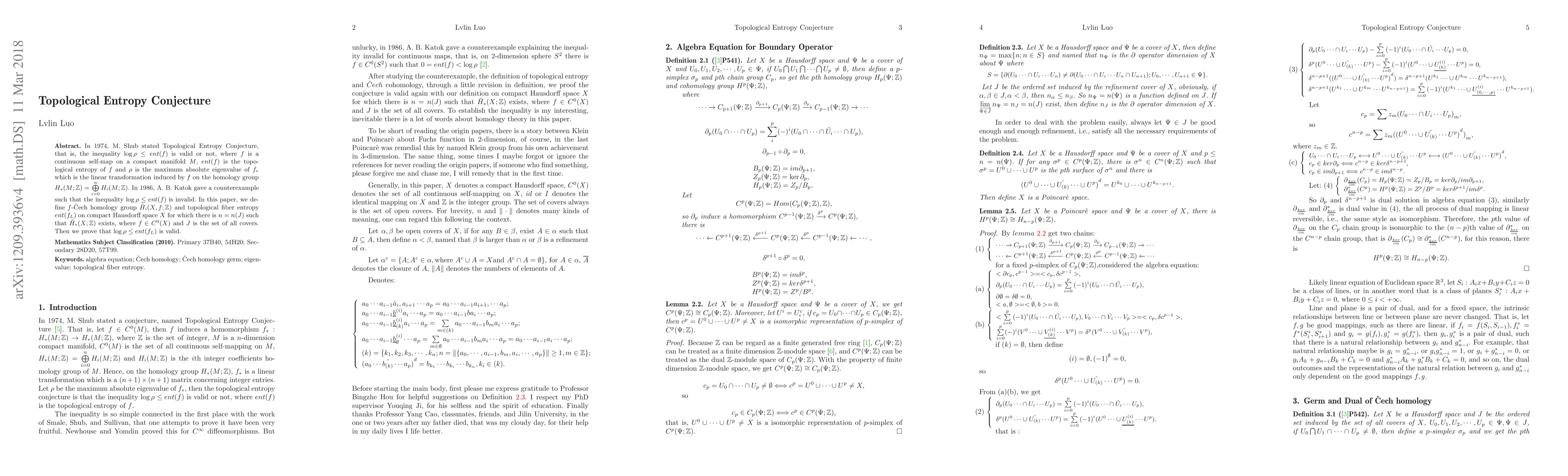 In 1974, M. Shub stated Topological Entropy Conjecture, that is, the inequality $\log\rho\leq ent(f)$ is valid or not, where $f$ is a continuous self-map on a compact manifold $M$, $ent(f)$ is the topological entropy of $f$ and $\rho$ is the maximum absolute eigenvalue of $f_*$ which is the linear transformation induced by $f$ on the homology group $H_{*}(M;\mathbb{Z})=\bigoplus\limits_{i=0}^n{H_{i}(M;\mathbb{Z})}$. In 1986, A. B. Katok gave a counterexample such that the inequality $\log\rho\leq ent(f)$ is invalid. In this paper, we define $f$-\v{C}ech homology group $\check{H}_{i}(X,f;\mathbb{Z})$ and topological fiber entropy $ent(f_L)$ on compact Hausdorff space $X$ for which there is $n=n(J)$ such that $\check{H}_*(X;\mathbb{Z})$ exists, where $f\in C^0(X)$ and $J$ is the set of all covers. Then we prove that $\log\rho\leq ent(f_L)$ is valid.