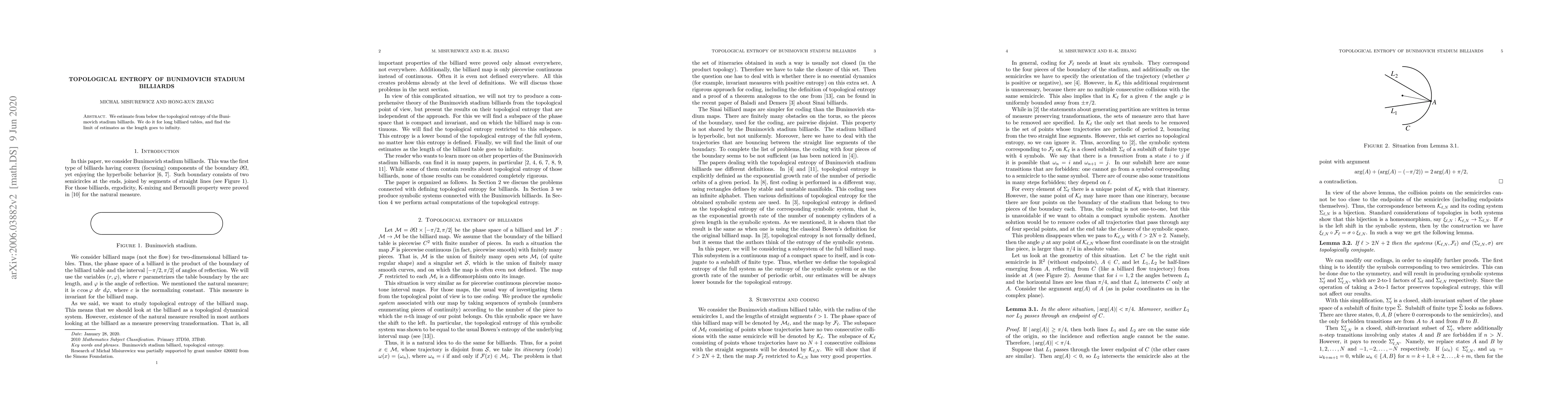 Summary: This paper estimates the topological entropy of Bunimovich stadium billiards for long tables, demonstrating that the entropy approaches a limit as the table length increases indefinitely. The study provides insights into the dynamical complexity of these billiard systems.