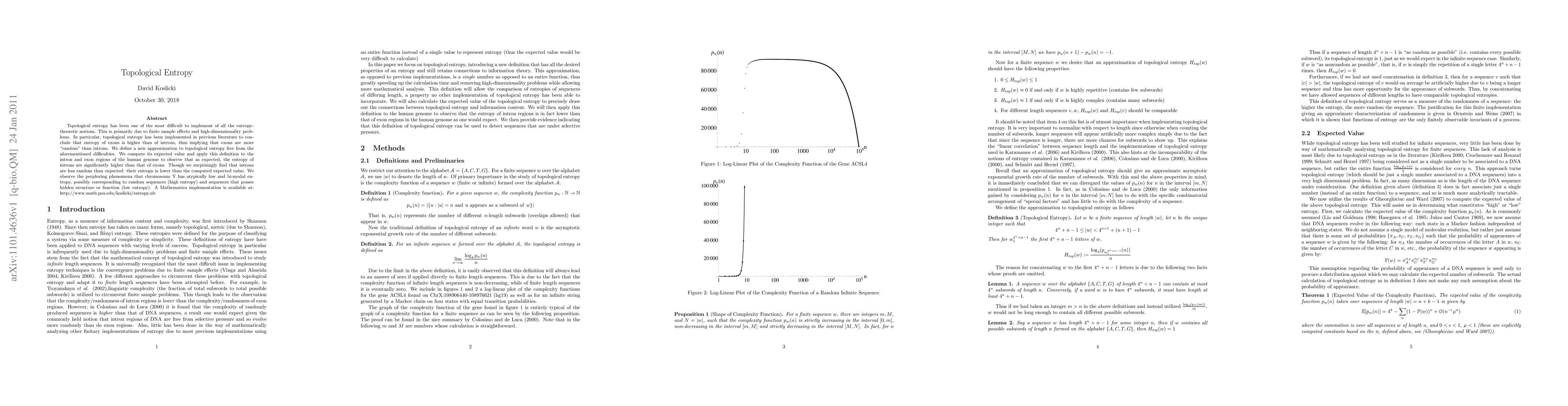 Topological entropy has been one of the most difficult to implement of all the entropy-theoretic notions. This is primarily due to finite sample effects and high-dimensionality problems. In particular, topological entropy has been implemented in previous literature to conclude that entropy of exons is higher than of introns, thus implying that exons are more "random" than introns. We define a new approximation to topological entropy free from the aforementioned difficulties. We compute its expected value and apply this definition to the intron and exon regions of the human genome to observe that as expected, the entropy of introns are significantly higher than that of exons. Though we surprisingly find that introns are less random than expected: their entropy is lower than the computed expected value. We observe the perplexing phenomena that chromosome Y has atypically low and bi-modal entropy, possibly corresponding to random sequences (high entropy) and sequences that posses hidden structure or function (low entropy).
