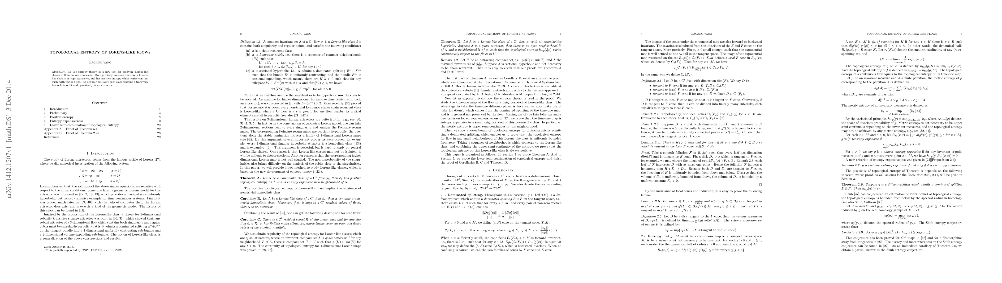 This paper employs entropy theory to analyze Lorenz-like flows, demonstrating that they are entropy expansive with positive, continuously varying entropy. It concludes that such flows typically contain transverse homoclinic orbits and are generally attractors.