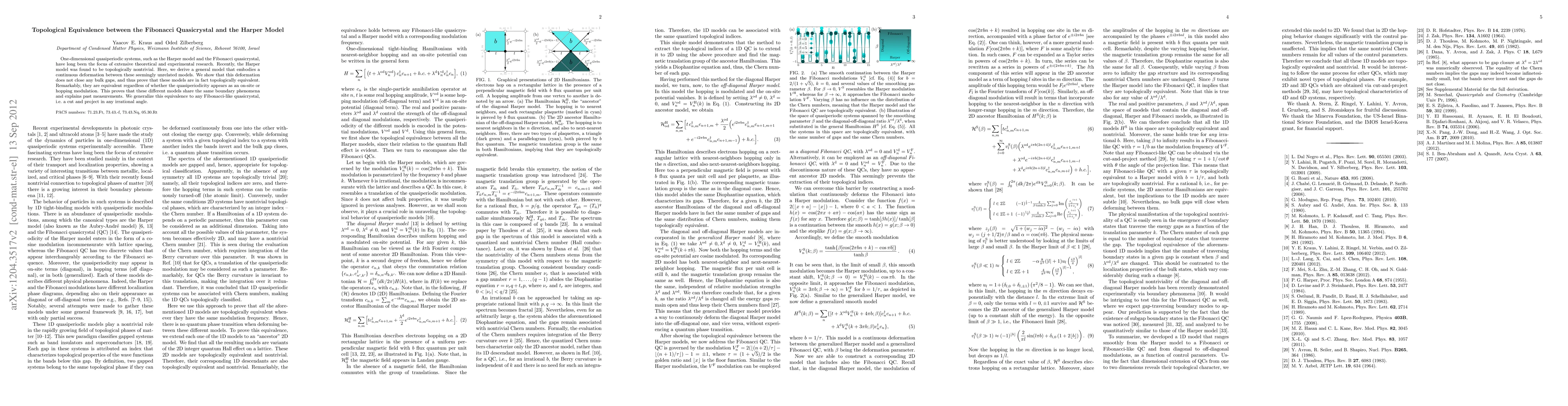 This paper demonstrates that the Fibonacci quasicrystal and the Harper model are topologically equivalent, showing a continuous deformation between them that preserves bulk gaps. This equivalence holds regardless of the quasiperiodic modulation type, explaining shared boundary phenomena and generalizing to any Fibonacci-like quasicrystal.