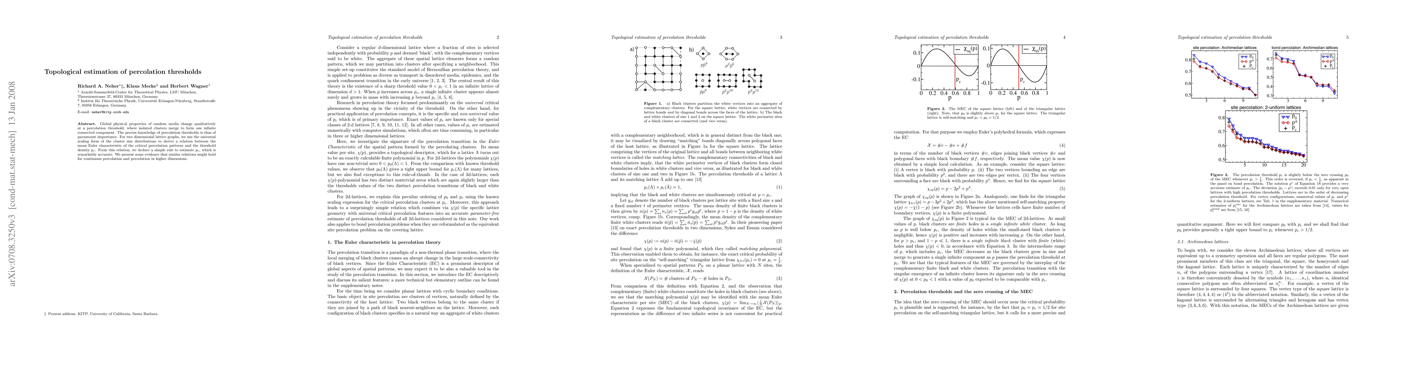 This paper develops a topological method to estimate percolation thresholds in two-dimensional lattice graphs by relating the mean Euler characteristic of critical percolation patterns to the threshold density $p_c$. The derived rule provides an accurate estimation of $p_c$ and suggests potential applicability to continuum percolation and higher-dimensional percolation.