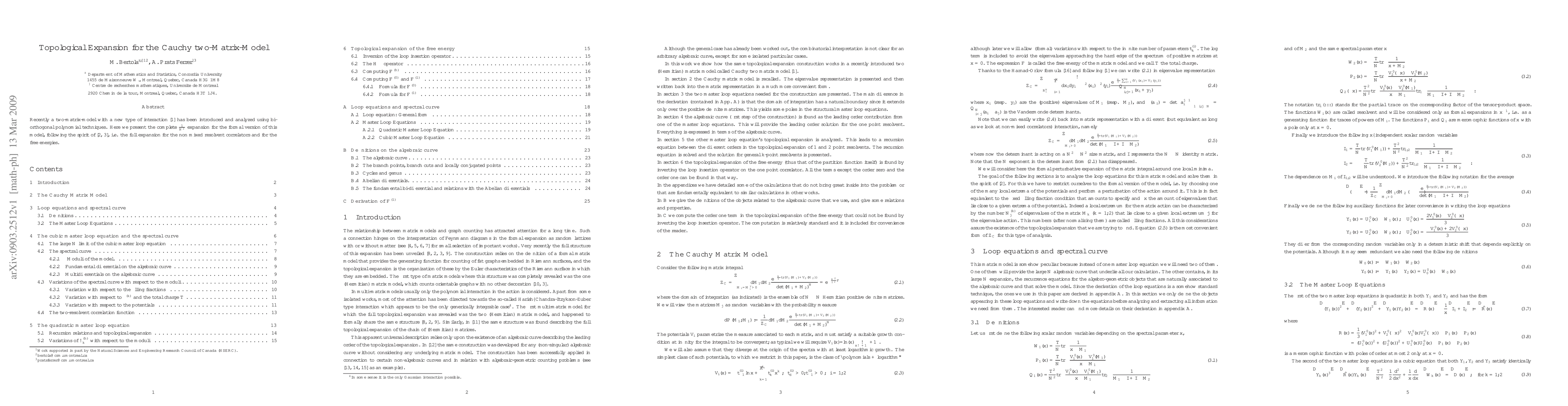 Recently, a two-matrix-model with a new type of interaction [1] has been introduced and analyzed using bi-orthogonal polynomial techniques. Here we present the complete 1/N^2 expansion for the formal version of this model, following the spirit of [2,3], i.e. the full expansion for the non mixed resolvent correlators and for the free energies.