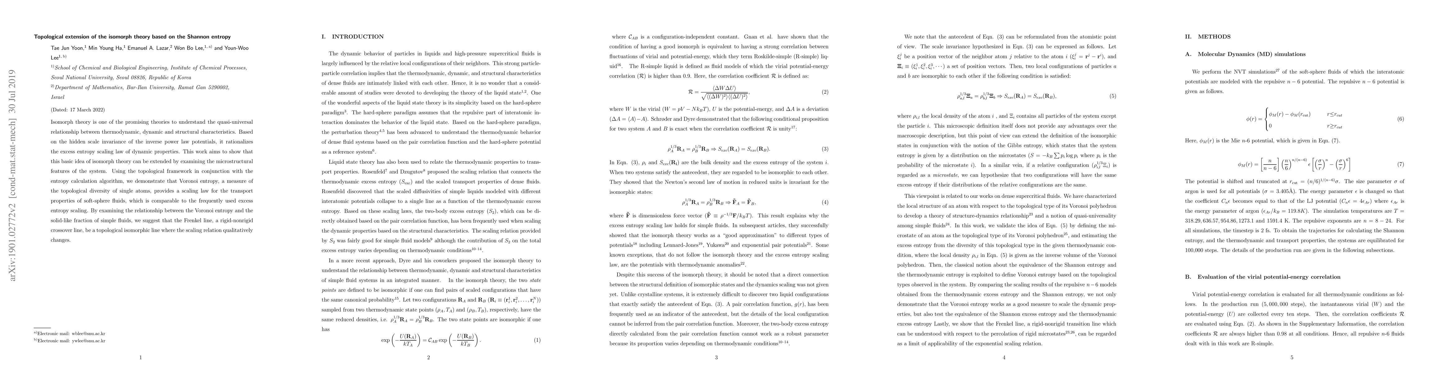This paper extends the isomorph theory by incorporating topological entropy measures, specifically Voronoi entropy, to explore the quasi-universal relationship between thermodynamic, dynamic, and structural characteristics. It shows that Voronoi entropy provides a comparable scaling law for transport properties in soft-sphere fluids and suggests the Frenkel line as a topological isomorphic line where the scaling relation changes.