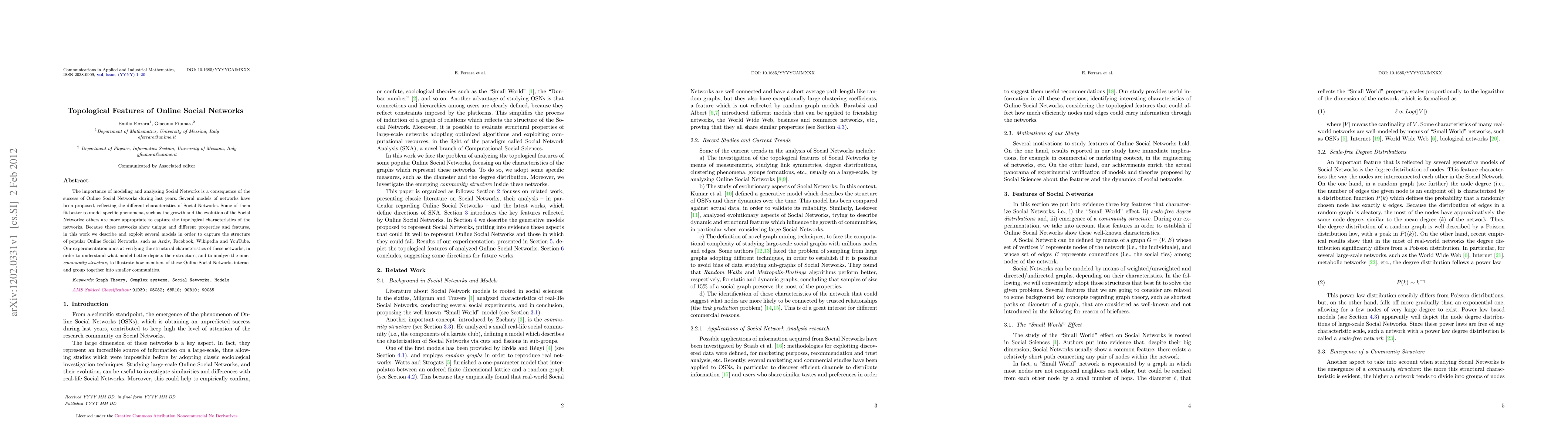 This research examines various models to capture the topological characteristics of popular online social networks like Arxiv, Facebook, Wikipedia, and YouTube. The study aims to identify which model best depicts their structure and to analyze their inner community dynamics.