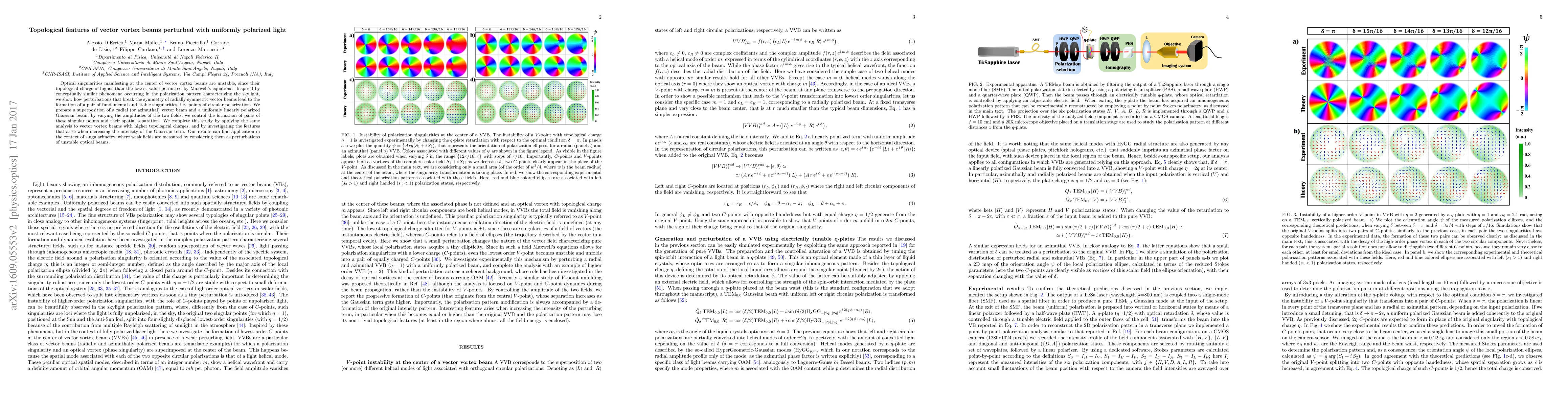 This paper investigates how perturbations from uniformly polarized light can stabilize topological singularities in vector vortex beams, transforming unstable singularities into stable points of circular polarization. The study demonstrates control over the formation and separation of these stable singularities by adjusting the relative amplitudes of the vector and polarized beams.