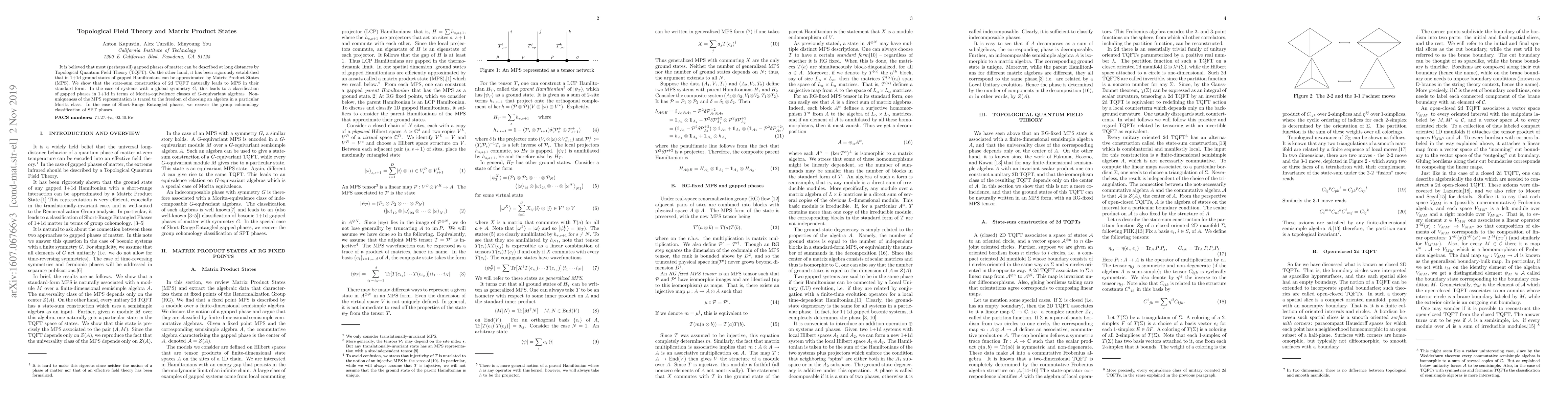 This paper demonstrates that the state-sum construction of 2d Topological Quantum Field Theory (TQFT) naturally results in Matrix Product States (MPS) in 1+1d, providing a classification of gapped phases in terms of Morita-equivalence classes of equivariant algebras, and recovering the group cohomology classification for Short-Range Entangled phases.