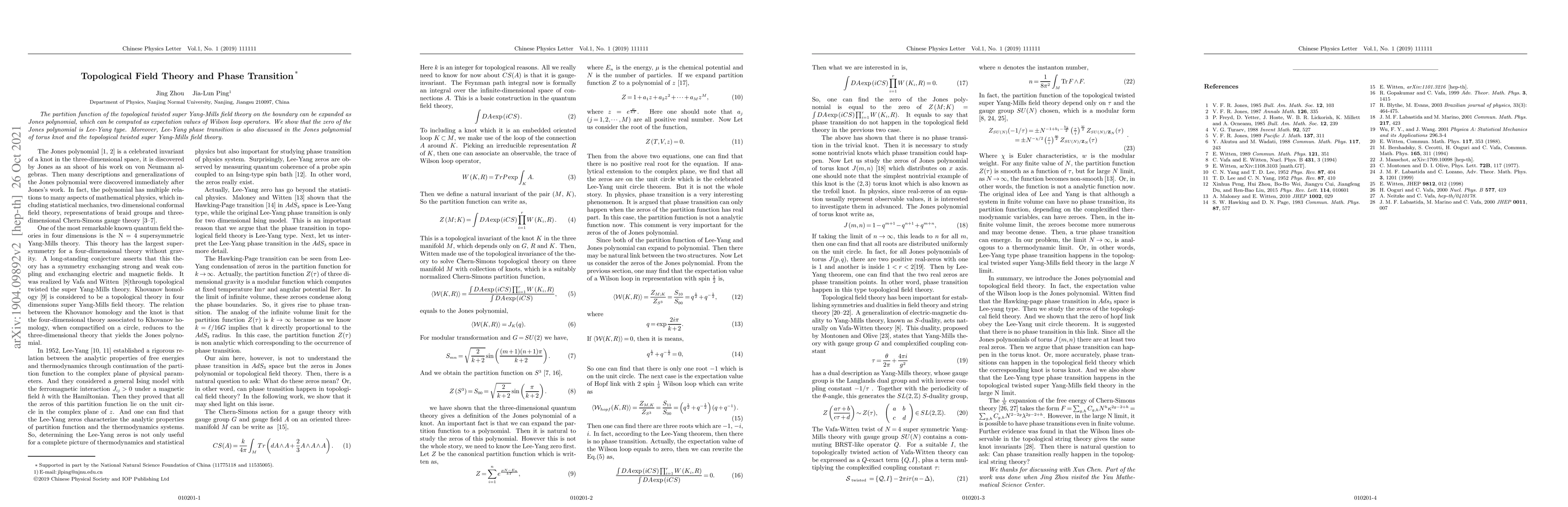 The partition function of the topological twisted super Yang-Mills field theory on the boundary can be expanded as Jones polynomial, which can be computed as expectation values of Wilson loop operators. We show that the zero of the Jones polynomial is Lee-Yang type. Moreover, Lee-Yang phase transition is also discussed in the Jones polynomial of torus knot and the topological twisted super Yang-Mills field theory.