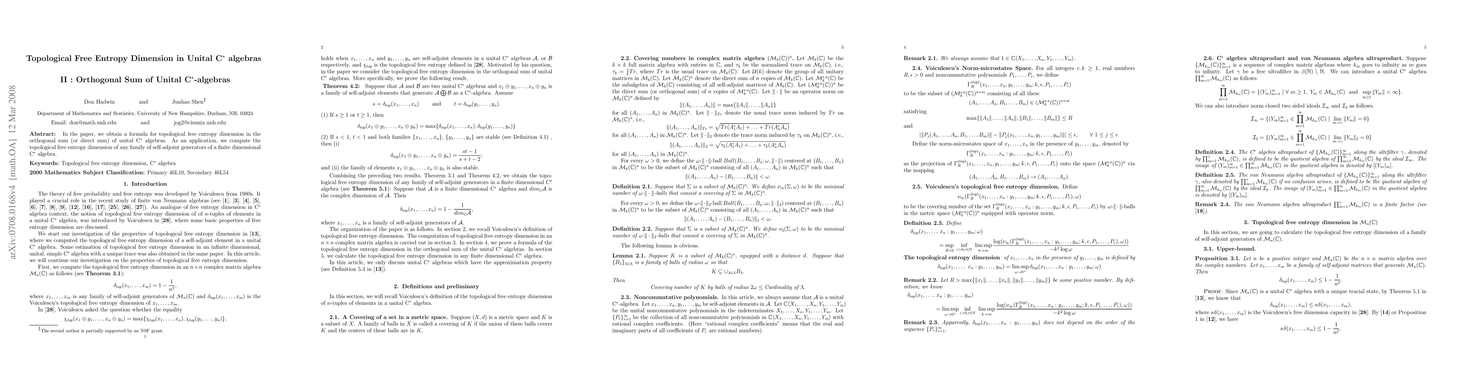 Summary: The paper derives a formula for topological free entropy dimension in the orthogonal sum of unital C^* algebras, with a corollary computing the dimension for self-adjoint generators of finite-dimensional C^* algebras.