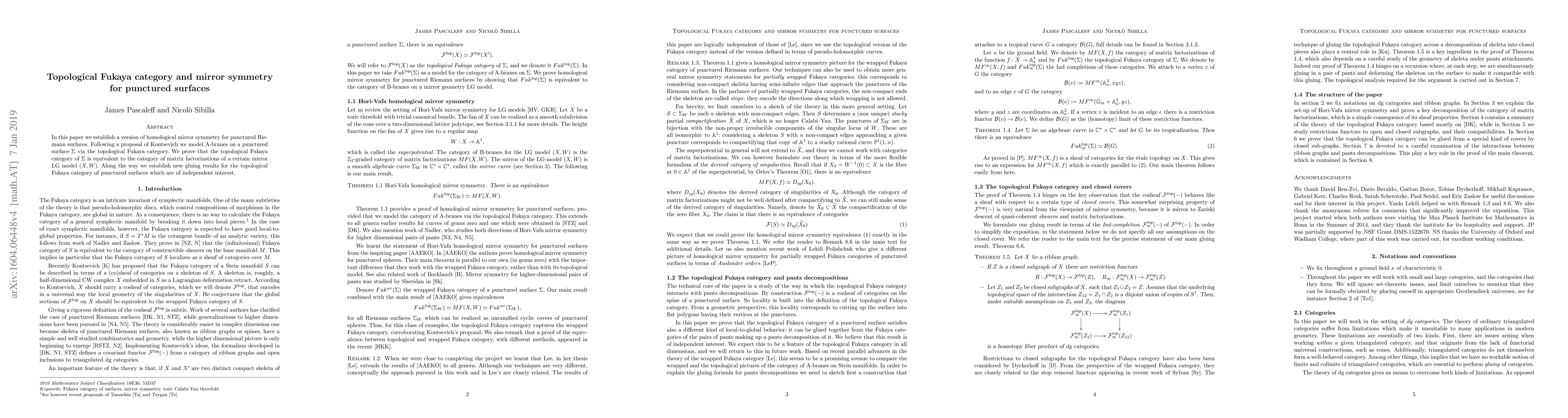 This paper establishes homological mirror symmetry for punctured Riemann surfaces by showing an equivalence between the topological Fukaya category of the punctured surface and the category of matrix factorizations of the mirror LG model. The study also introduces new gluing results for the topological Fukaya category.