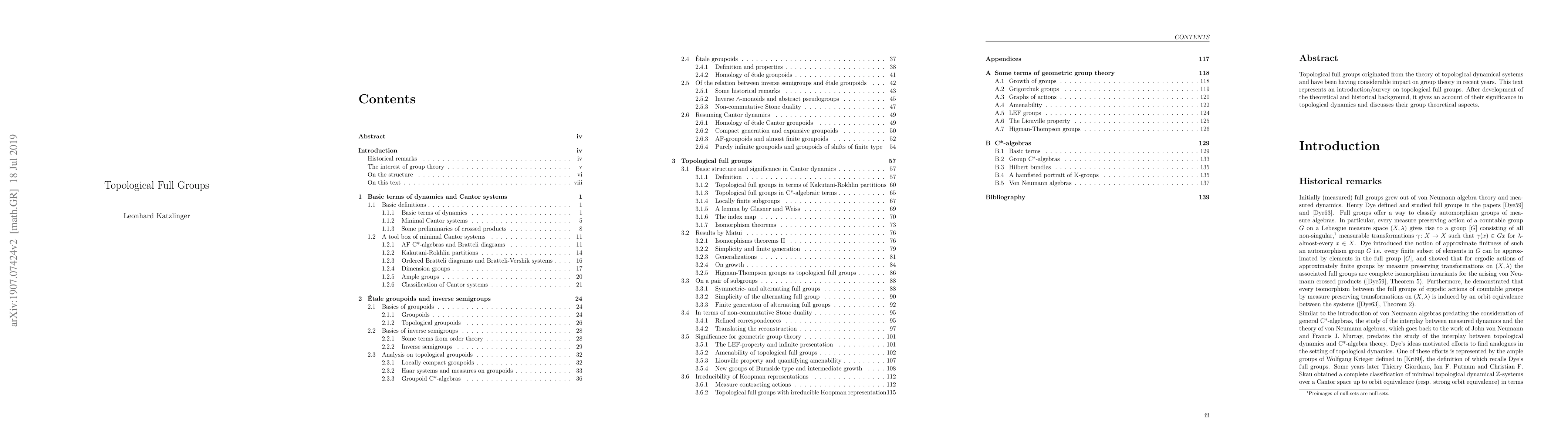 This paper provides an introduction to topological full groups, tracing their origins and significance in topological dynamics and group theory. It explores their theoretical background and discusses their implications and group-theoretical properties.