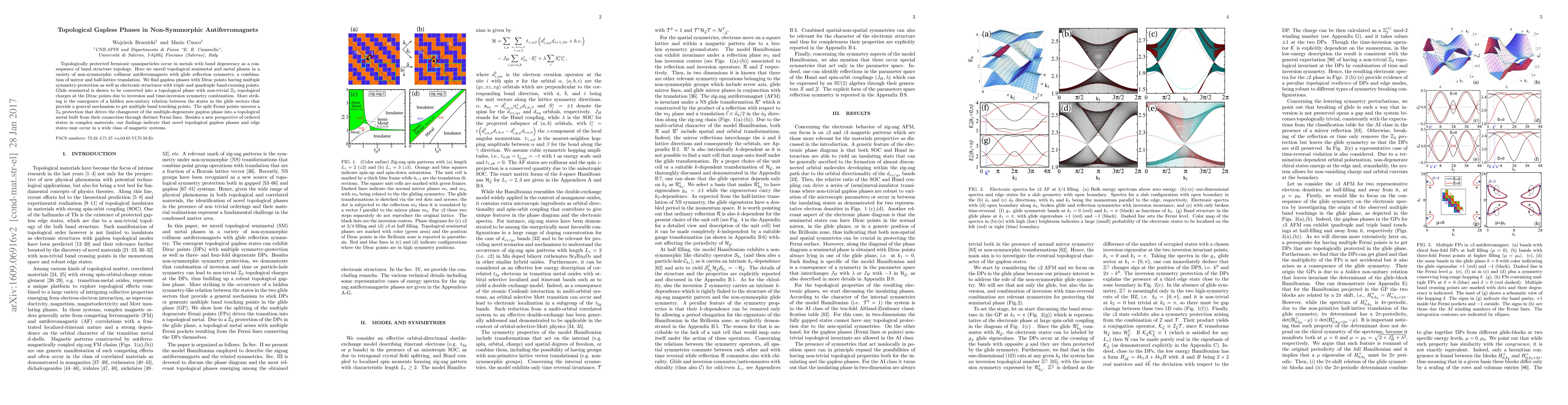 This research identifies topological gapless phases in non-symmorphic antiferromagnets, discovering semimetal and metal phases with Dirac points and multiple band-crossing points protected by symmetry. The study highlights the conversion of glide semimetals into topological phases with $\mathbb{Z}_2$ charges, revealing hidden non-unitary relations leading to multiple band touching points.