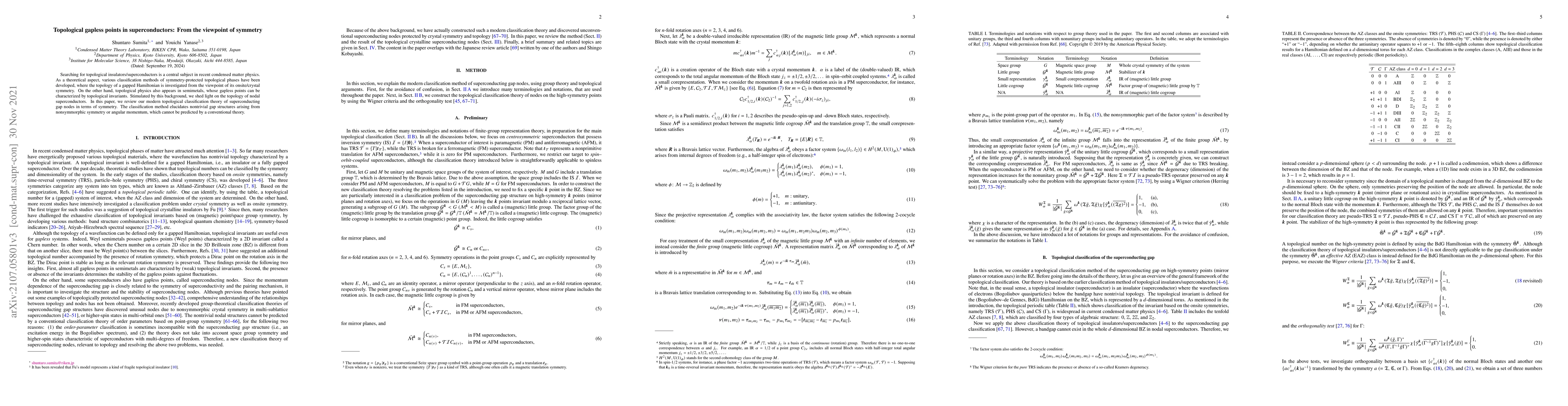 Searching for topological insulators/superconductors is a central subject in recent condensed matter physics. As a theoretical aspect, various classification methods of symmetry-protected topological phases have been developed, where the topology of a gapped Hamiltonian is investigated from the viewpoint of its onsite/crystal symmetry. On the other hand, topological physics also appears in semimetals, whose gapless points can be characterized by topological invariants. Stimulated by this background, we shed light on the topology of nodal superconductors. In this paper, we review our modern topological classification theory of superconducting gap nodes in terms of symmetry. The classification method elucidates nontrivial gap structures arising from nonsymmorphic symmetry or angular momentum, which cannot be predicted by a conventional theory.