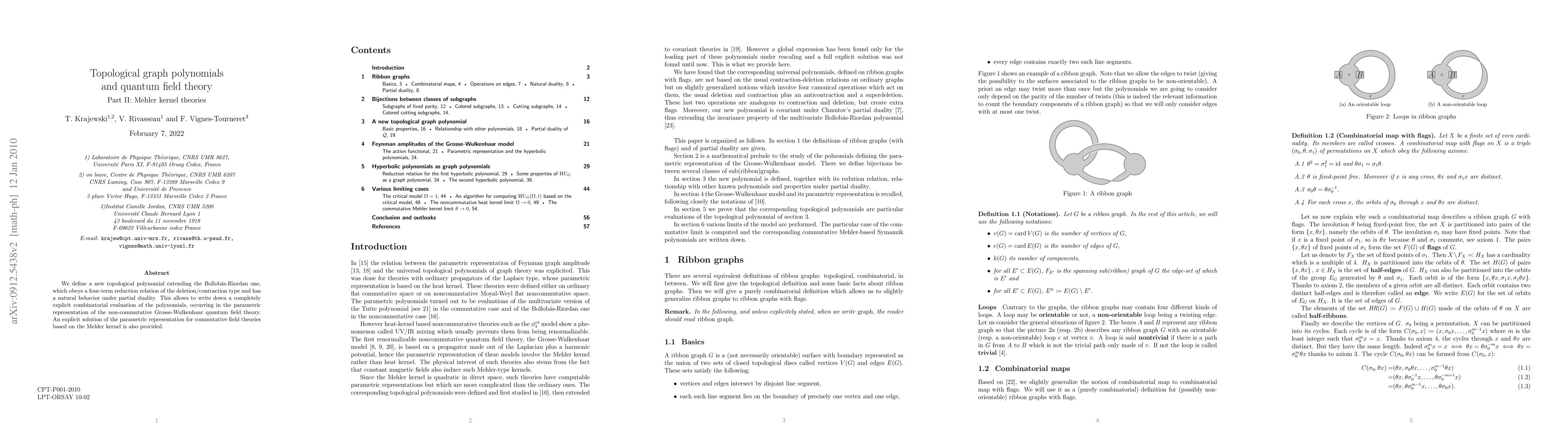 We define a new topological polynomial extending the Bollobas-Riordan one, which obeys a four-term reduction relation of the deletion/contraction type and has a natural behavior under partial duality. This allows to write down a completely explicit combinatorial evaluation of the polynomials, occurring in the parametric representation of the non-commutative Grosse-Wulkenhaar quantum field theory. An explicit solution of the parametric representation for commutative field theories based on the Mehler kernel is also provided.