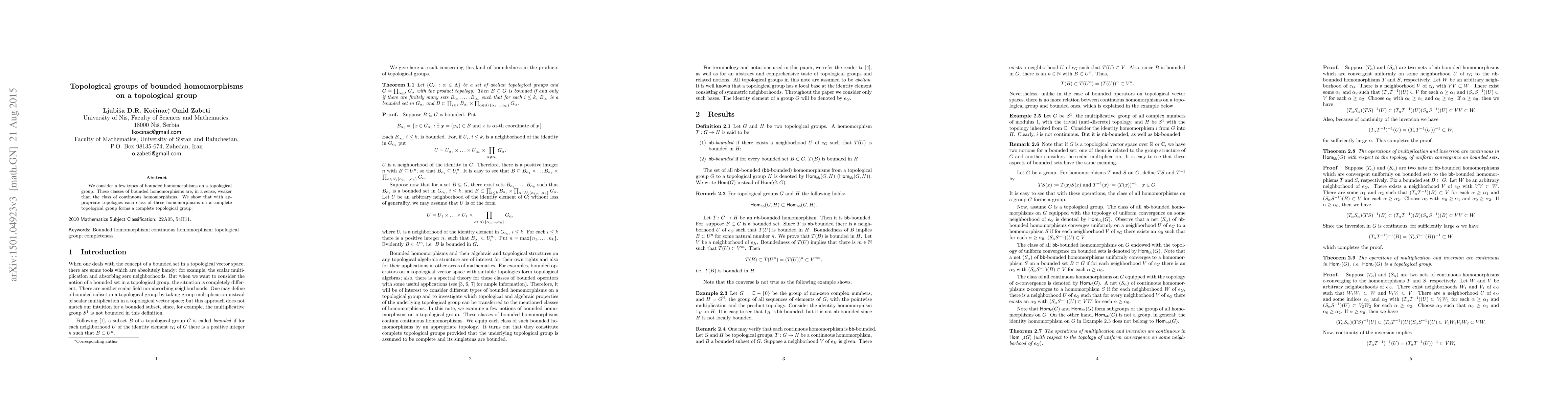 This paper explores various classes of bounded homomorphisms on a topological group, demonstrating that each class, when equipped with suitable topologies, forms a complete topological group. These homomorphisms are less restrictive than continuous ones.