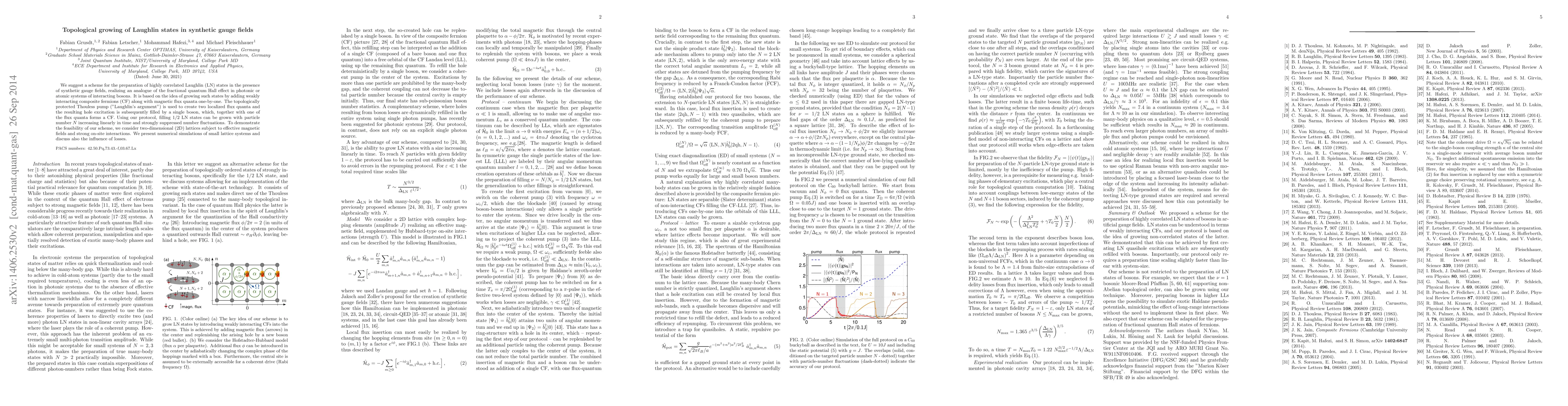 We suggest a scheme for the preparation of highly correlated Laughlin (LN) states in the presence of synthetic gauge fields, realizing an analogue of the fractional quantum Hall effect in photonic or atomic systems of interacting bosons. It is based on the idea of growing such states by adding weakly interacting composite fermions (CF) along with magnetic flux quanta one-by-one. The topologically protected Thouless pump ("Laughlin's argument") is used to create two localized flux quanta and the resulting hole excitation is subsequently filled by a single boson, which, together with one of the flux quanta forms a CF. Using our protocol, filling 1/2 LN states can be grown with particle number N increasing linearly in time and strongly suppressed number fluctuations. To demonstrate the feasibility of our scheme, we consider two-dimensional (2D) lattices subject to effective magnetic fields and strong on-site interactions. We present numerical simulations of small lattice systems and discuss also the influence of losses.