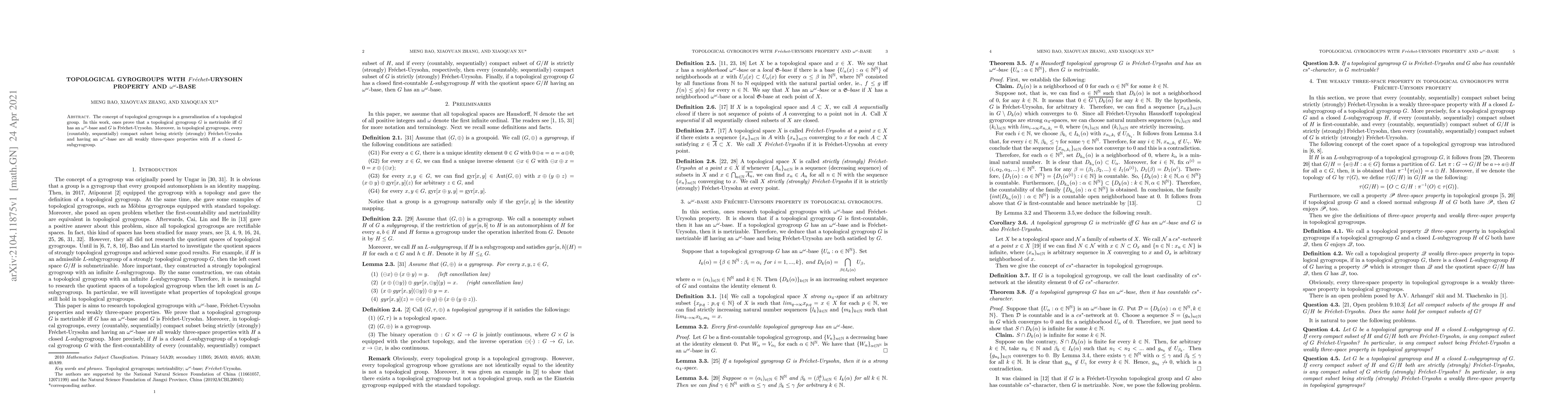 This paper explores topological gyrogroups, a generalization of topological groups, proving that a gyrogroup G is metrizable if it possesses an ω^ω-base and the Frechet-Urysohn property. It also discusses how compact subsets in these gyrogroups exhibit specific weakly three-space properties.