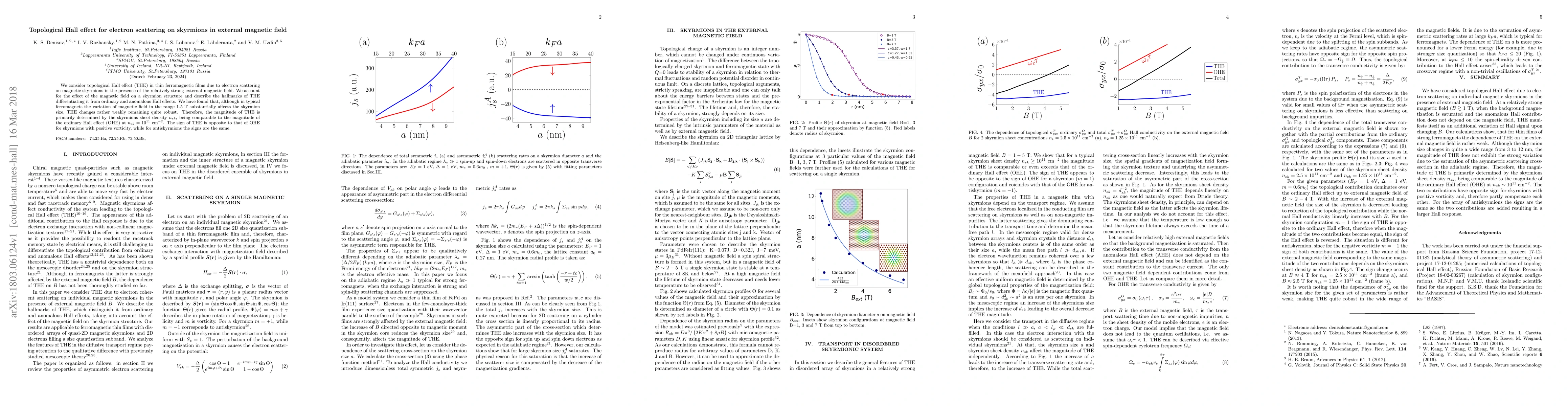 This paper investigates the topological Hall effect (THE) in thin ferromagnetic films caused by electron scattering on skyrmions under an external magnetic field. THE is shown to be robust against magnetic field variations and primarily depends on skyrmion sheet density, contrasting with the ordinary Hall effect (OHE).