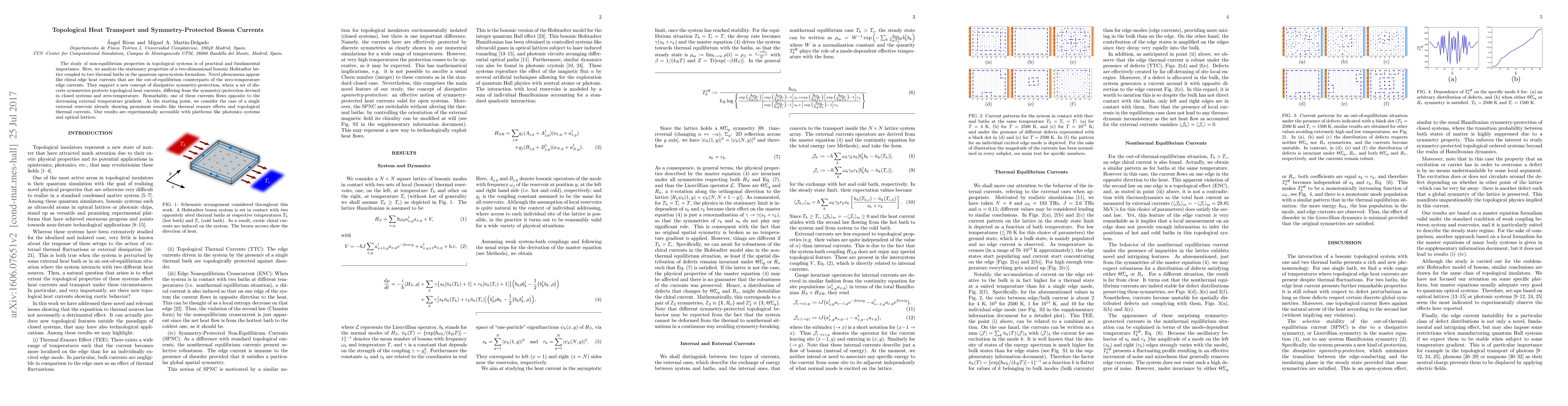The study of non-equilibrium properties in topological systems is of practical and fundamental importance. Here, we analyze the stationary properties of a two-dimensional bosonic Hofstadter lattice coupled to two thermal baths in the quantum open-system formalism. Novel phenomena appear like chiral edge heat currents that are the out-of-equilibrium counterparts of the zero-temperature edge currents. They support a new concept of dissipative symmetry-protection, where a set of discrete symmetries protects topological heat currents, differing from the symmetry-protection devised in closed systems and zero-temperature. Remarkably, one of these currents flows opposite to the decreasing external temperature gradient. As the starting point, we consider the case of a single external reservoir already showing prominent results like thermal erasure effects and topological thermal currents. Our results are experimentally accessible with platforms like photonics systems and optical lattices.