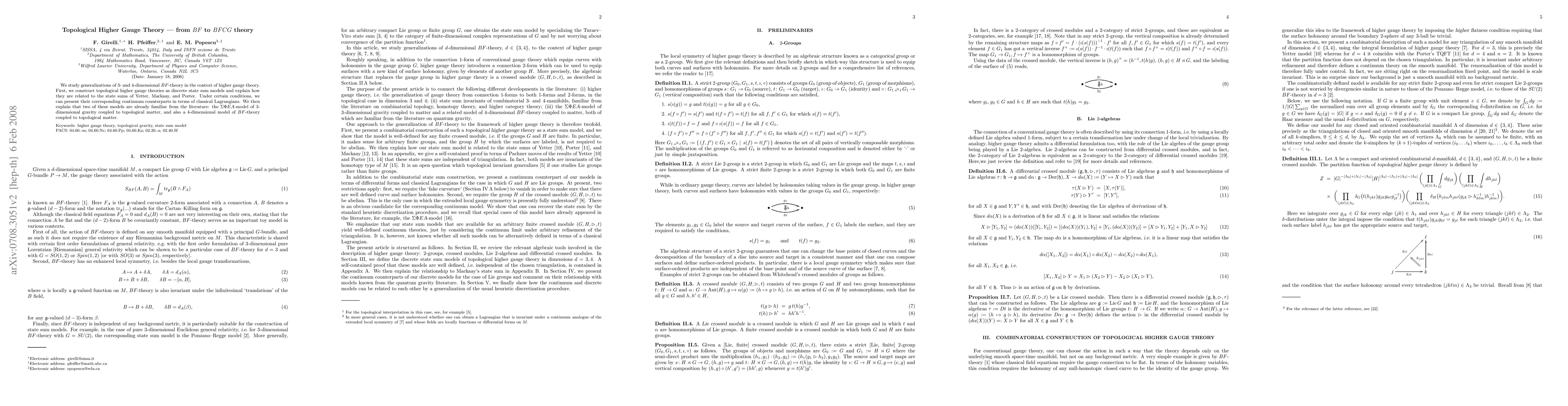 We study generalizations of 3- and 4-dimensional BF-theory in the context of higher gauge theory. First, we construct topological higher gauge theories as discrete state sum models and explain how they are related to the state sums of Yetter, Mackaay, and Porter. Under certain conditions, we can present their corresponding continuum counterparts in terms of classical Lagrangians. We then explain that two of these models are already familiar from the literature: the SigmaPhiEA-model of 3-dimensional gravity coupled to topological matter, and also a 4-dimensional model of BF-theory coupled to topological matter.