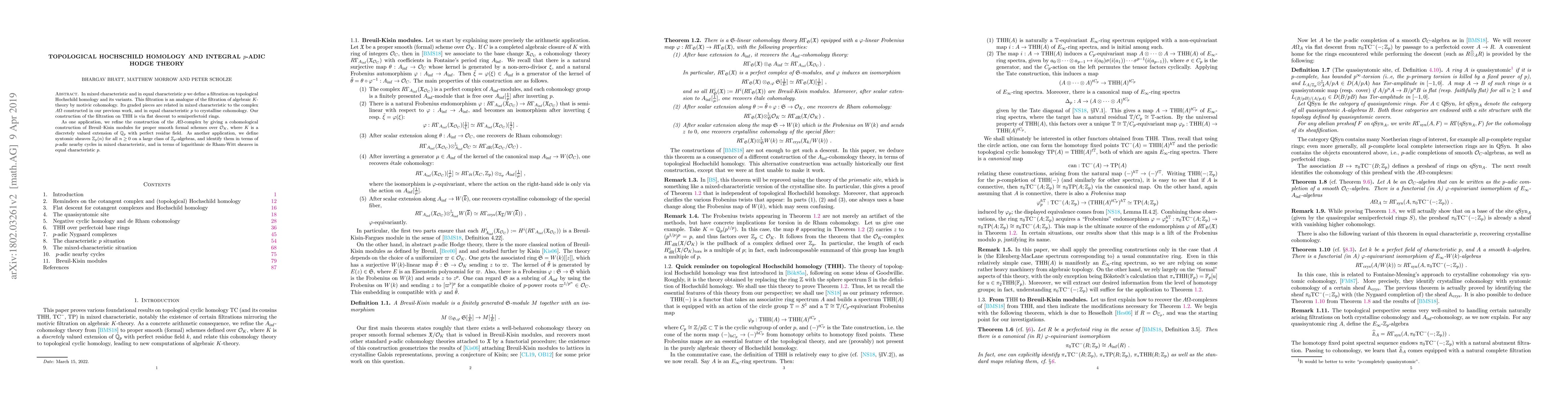 In mixed characteristic and in equal characteristic $p$ we define a filtration on topological Hochschild homology and its variants. This filtration is an analogue of the filtration of algebraic $K$-theory by motivic cohomology. Its graded pieces are related in mixed characteristic to the complex $A\Omega$ constructed in our previous work, and in equal characteristic $p$ to crystalline cohomology. Our construction of the filtration on $\mathrm{THH}$ is via flat descent to semiperfectoid rings. As one application, we refine the construction of the $A\Omega$-complex by giving a cohomological construction of Breuil--Kisin modules for proper smooth formal schemes over $\mathcal O_K$, where $K$ is a discretely valued extension of $\mathbb Q_p$ with perfect residue field. As another application, we define syntomic sheaves $\mathbb Z_p(n)$ for all $n\geq 0$ on a large class of $\mathbb Z_p$-algebras, and identify them in terms of $p$-adic nearby cycles in mixed characteristic, and in terms of logarithmic de~Rham-Witt sheaves in equal characteristic $p$.